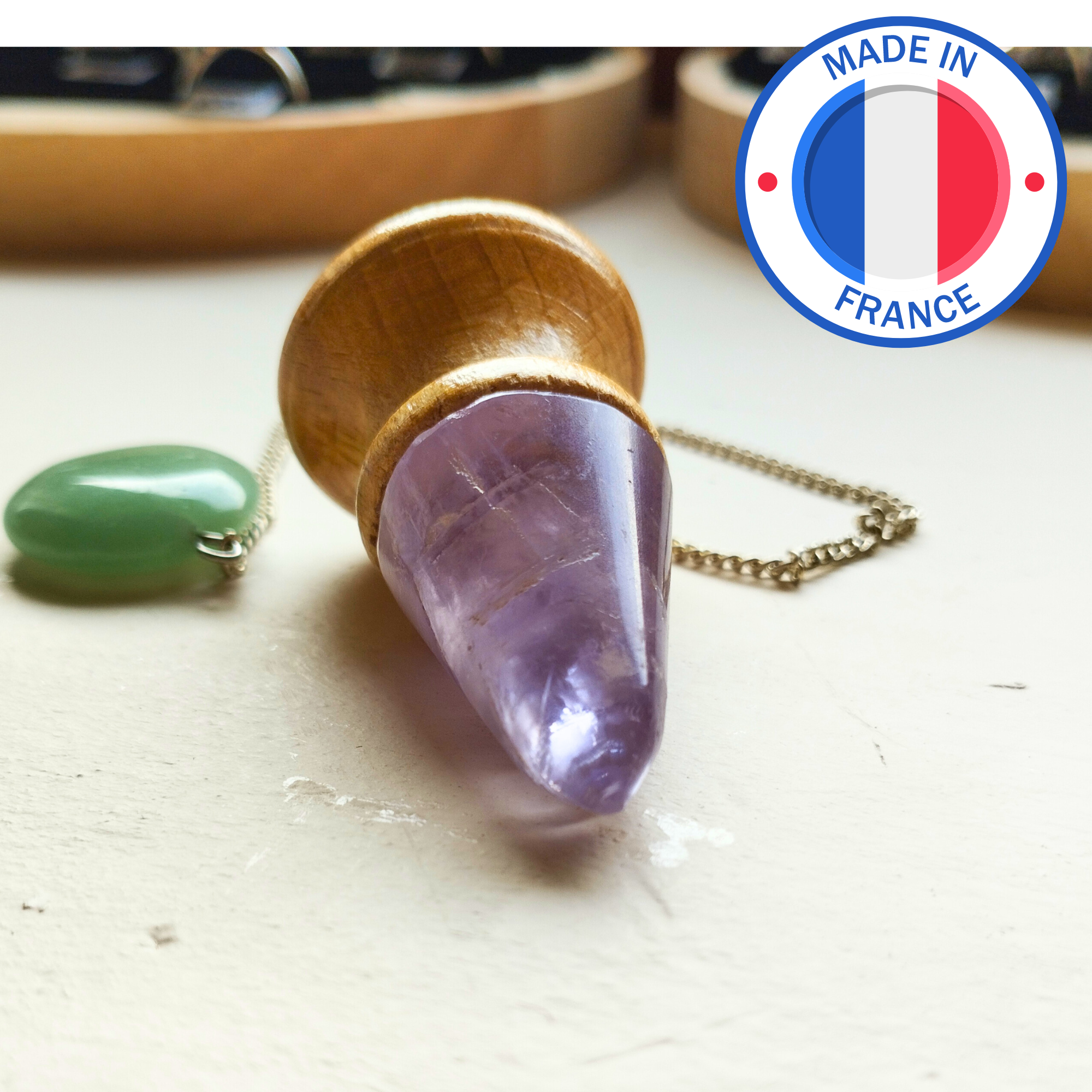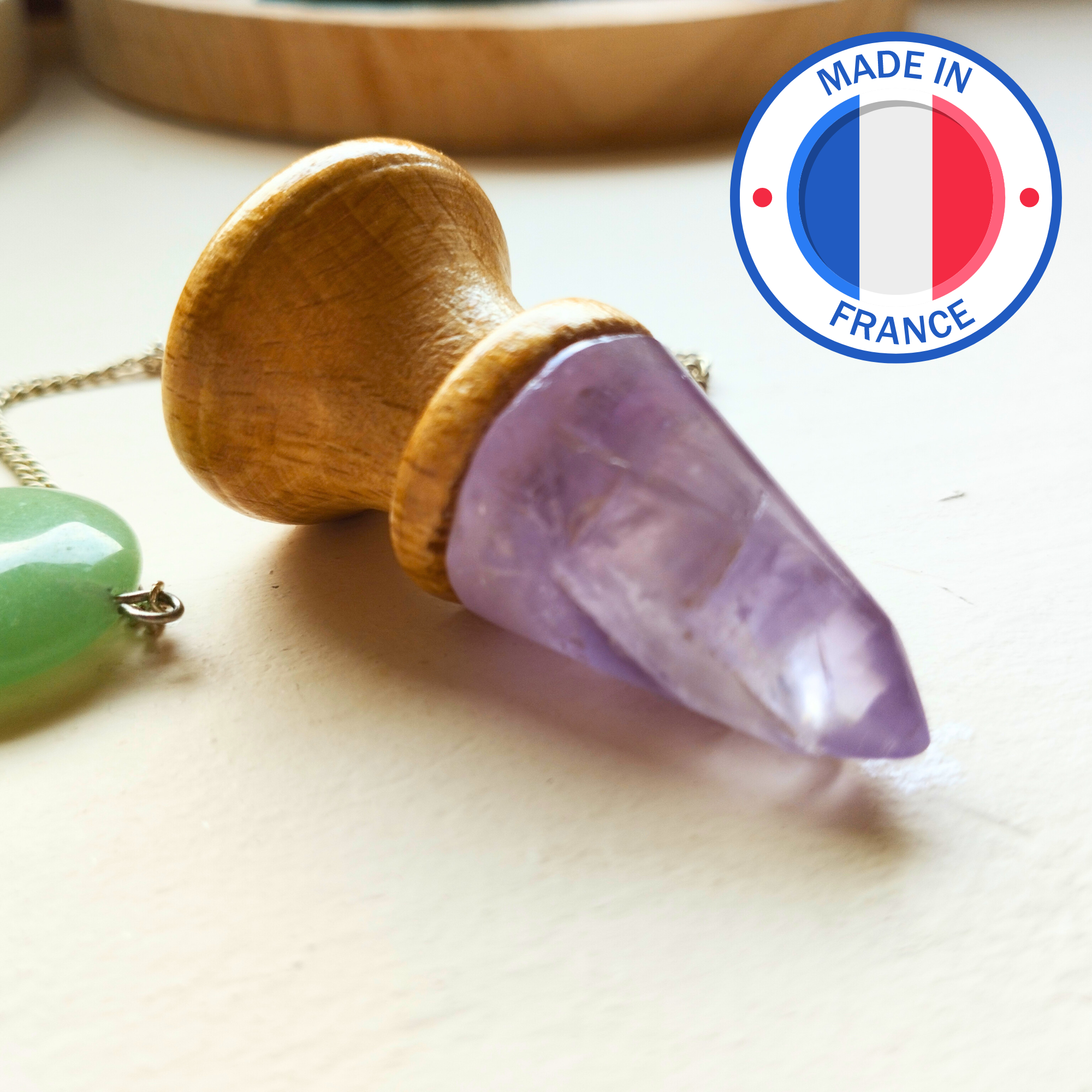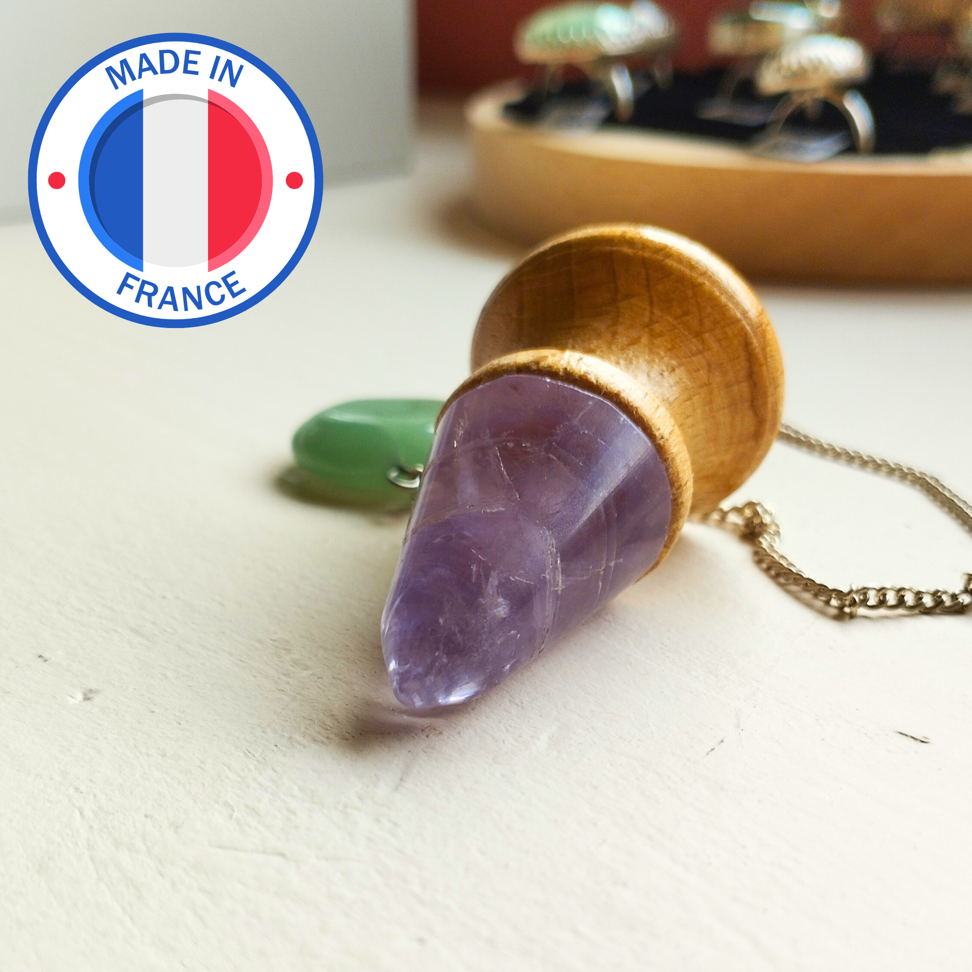 Tous les pendules sont fabriqués à la main par mes soins à partir de bois et pierres brutes.