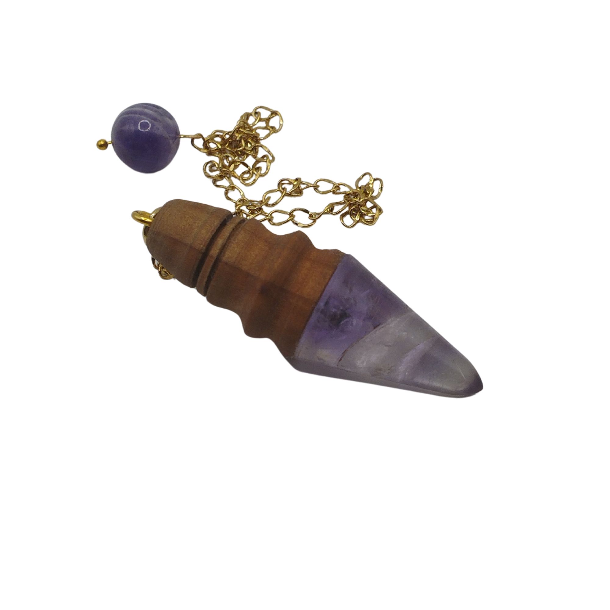 Tous les pendules sont fabriqués à la main par mes soins à partir de bois et pierres brutes.