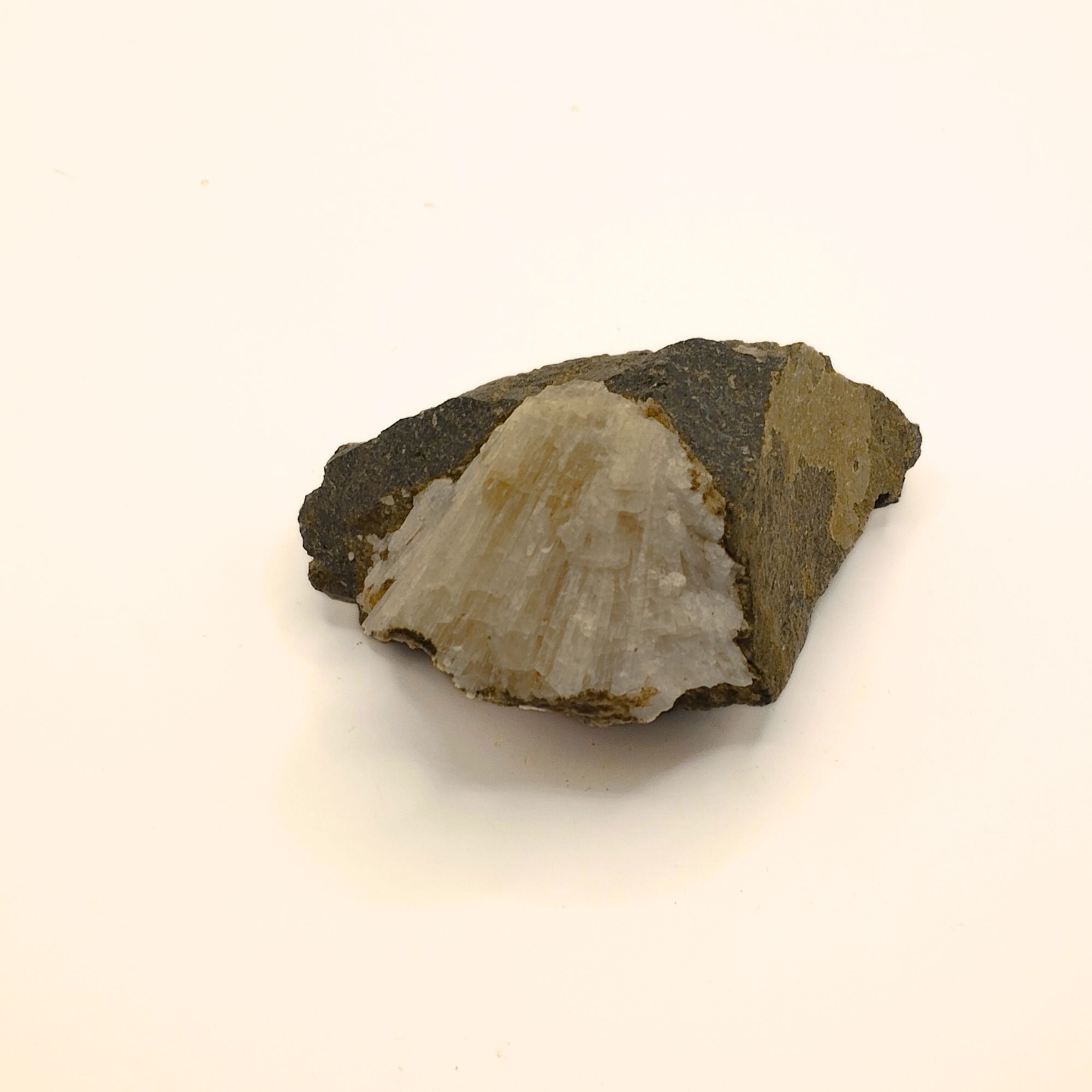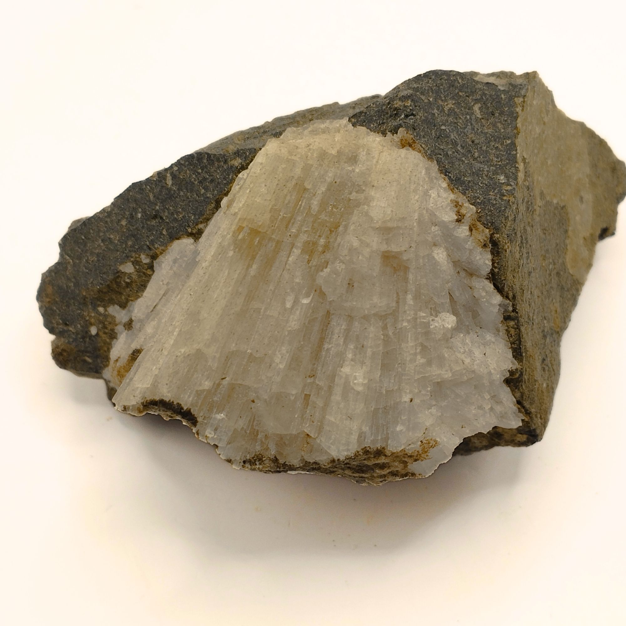 Cette Aragonite sur basalte nous vient de Curebourse dans le Cantal