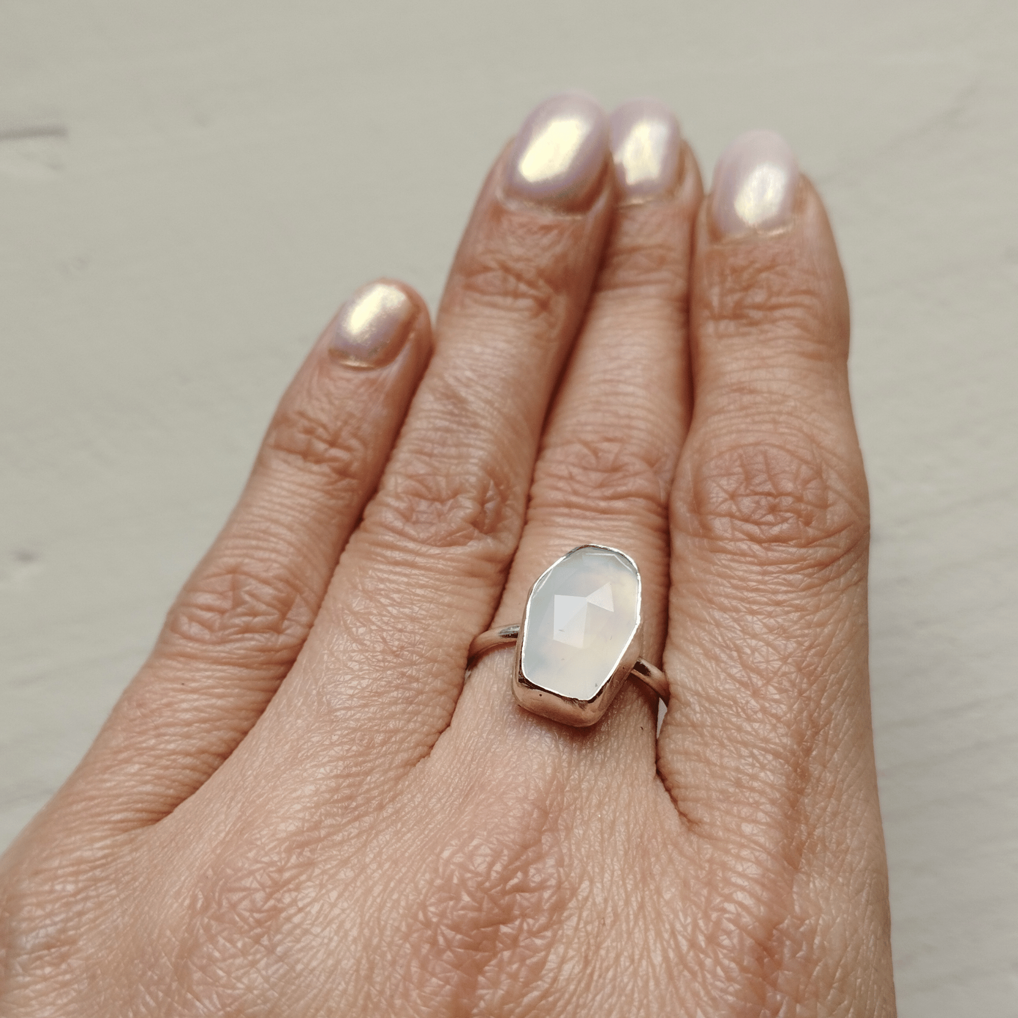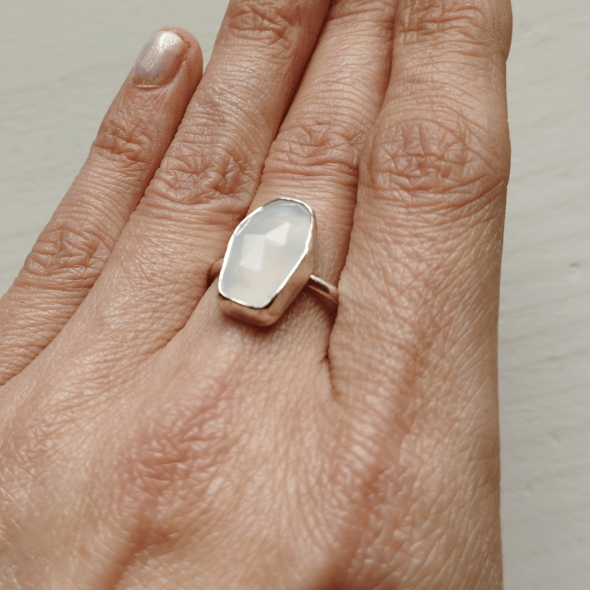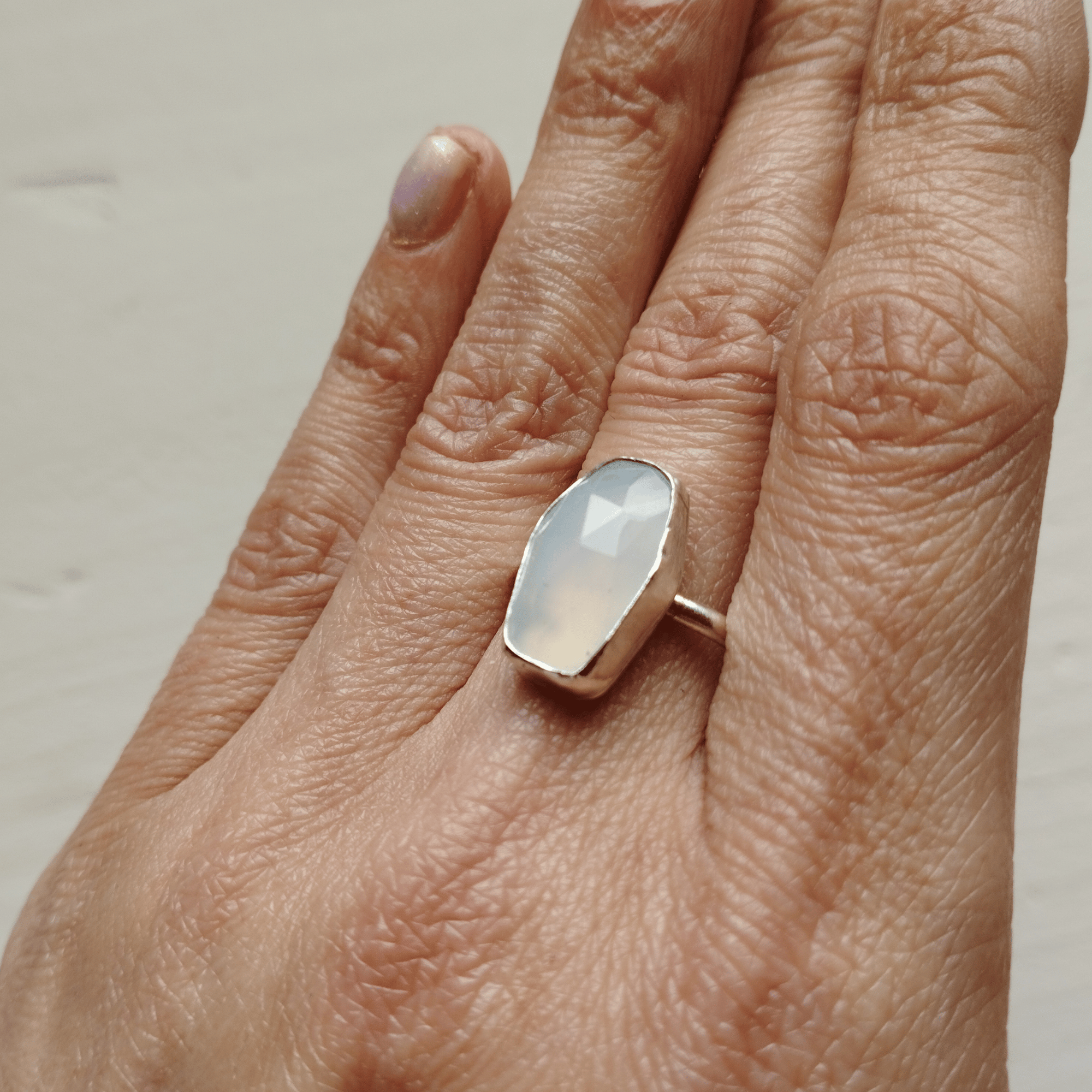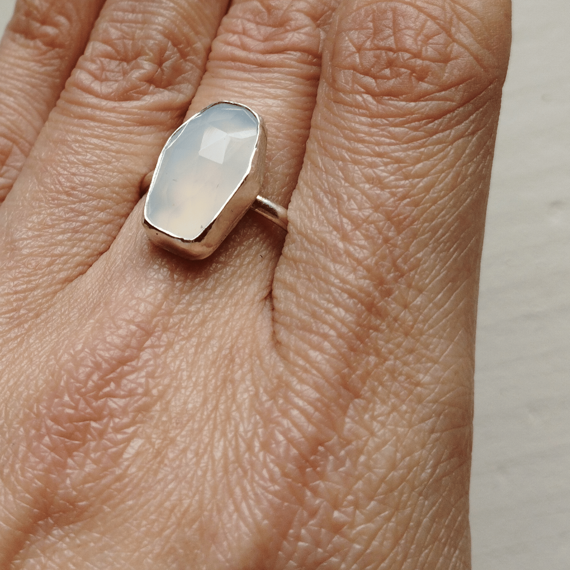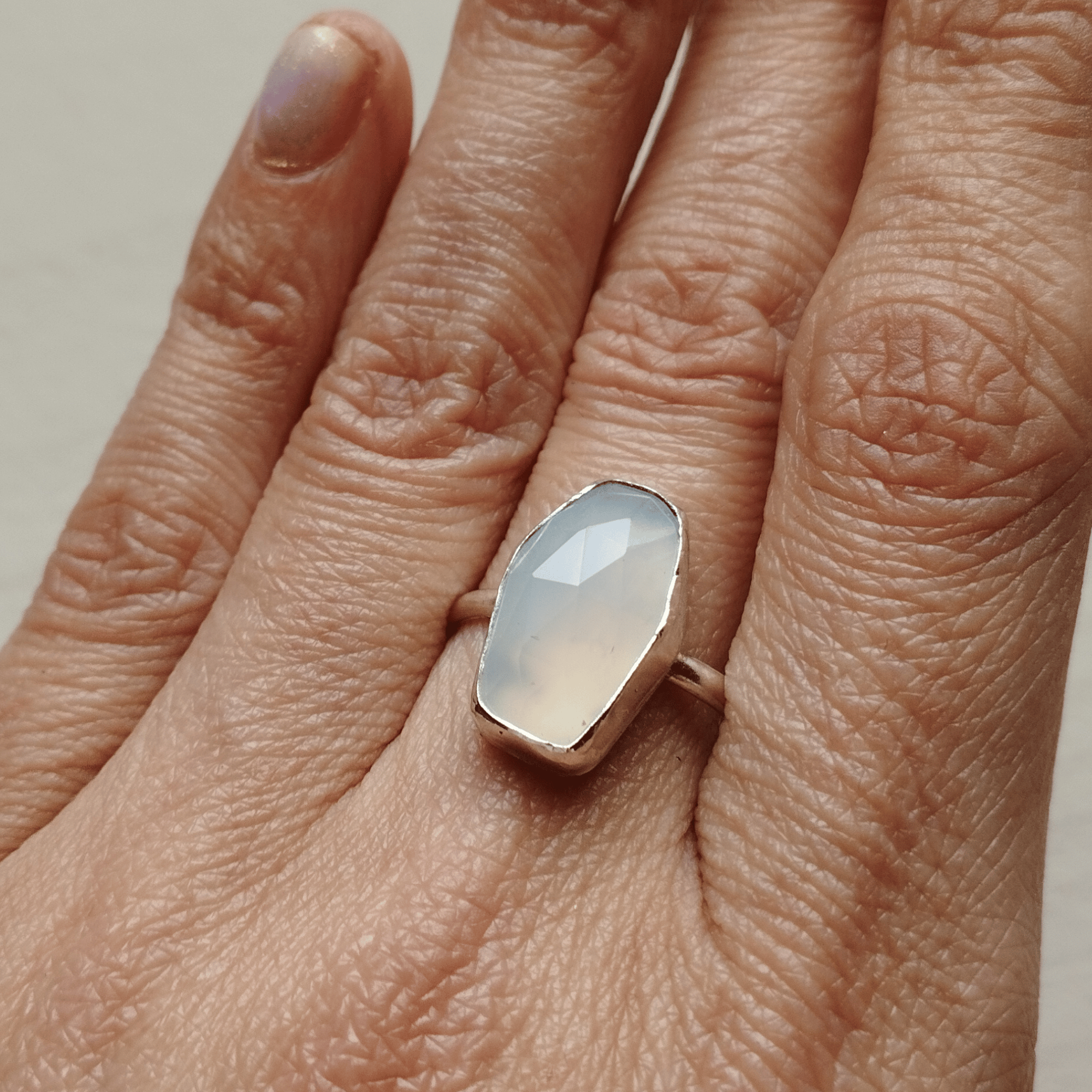 Découvrez une création unique avec cette bague artisanale en calcédoine et argent sterling 925.