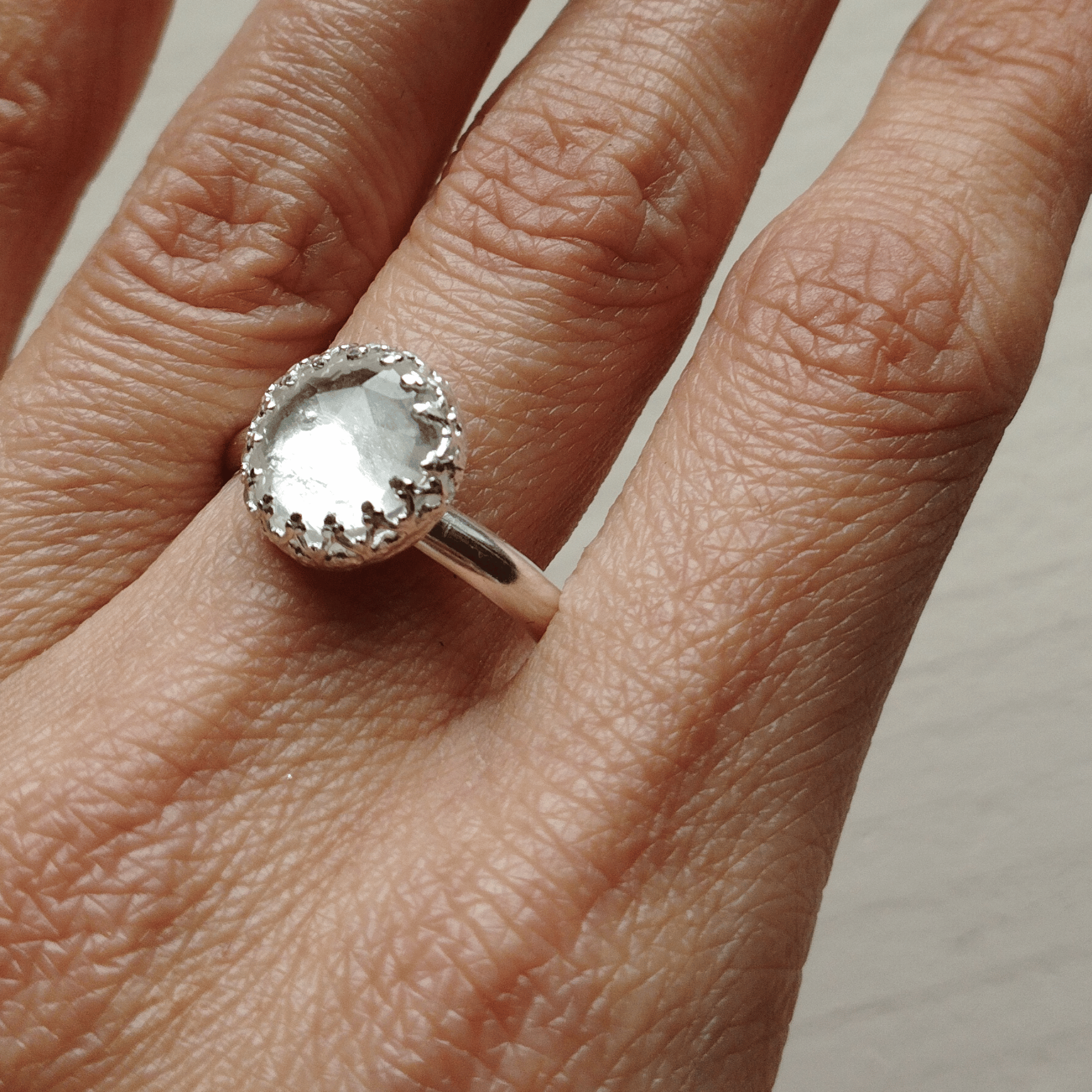 Bague artisanale en cristal de roche et argent sterling 925Bague artisanale en cristal de roche et argent sterling 925