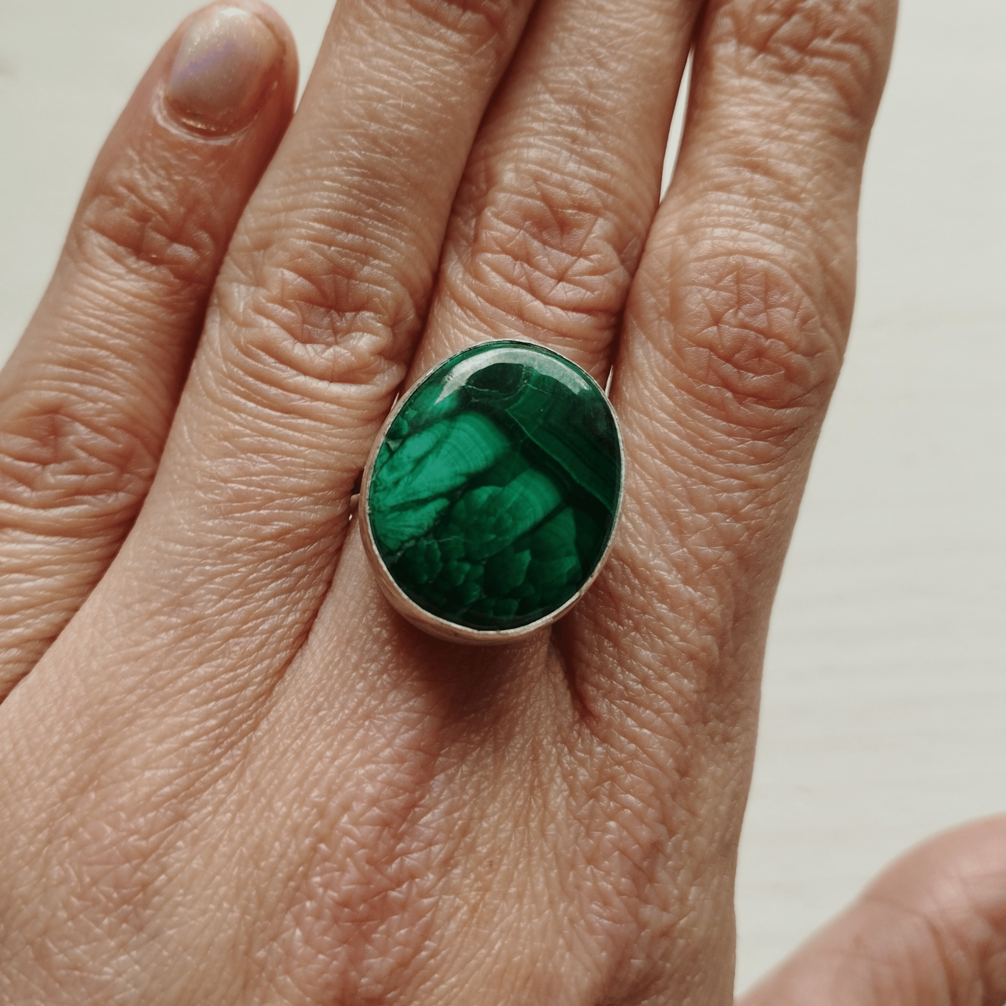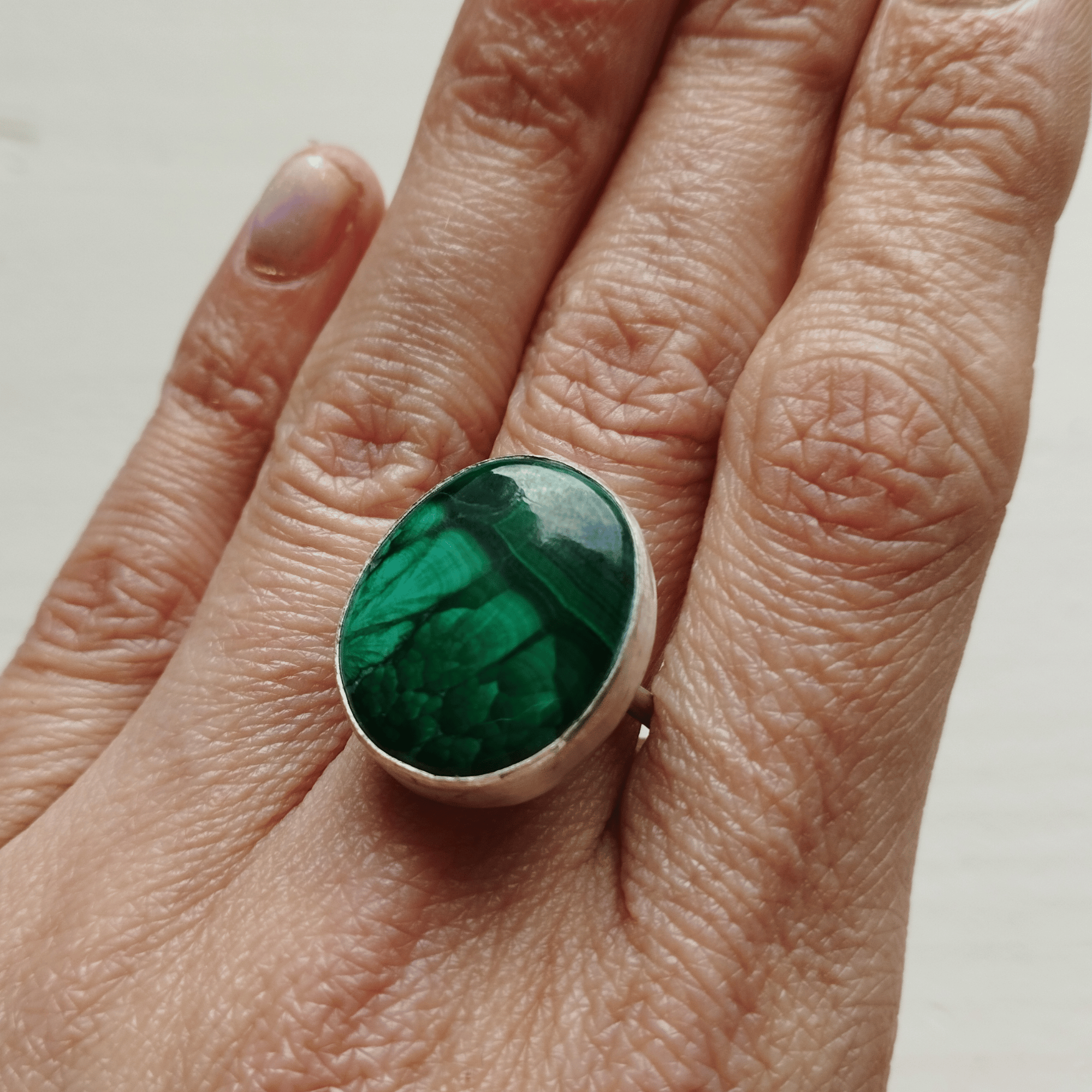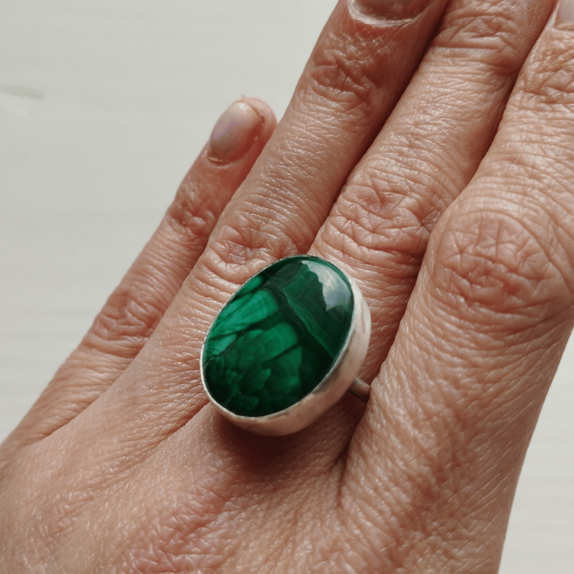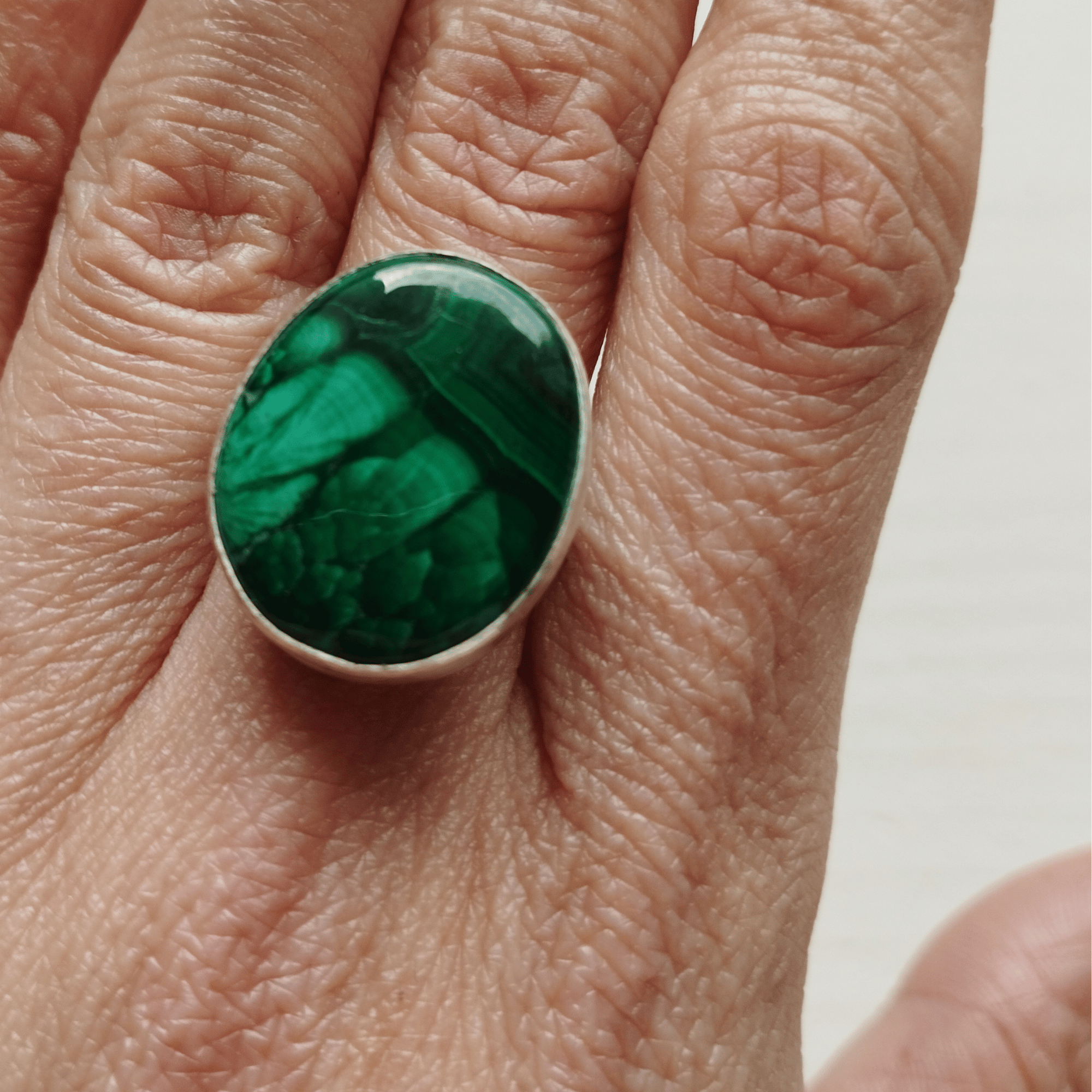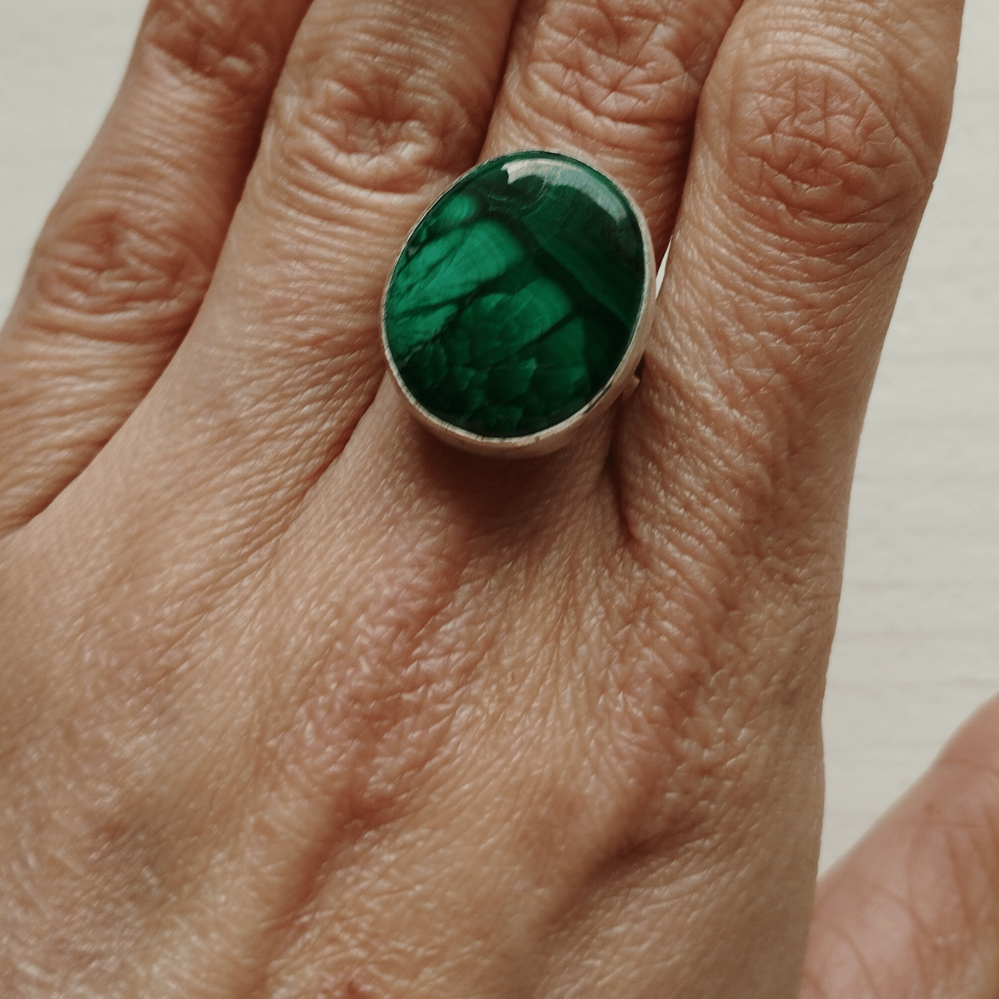 Découvrez une création unique avec cette bague artisanale en malachite et argent sterling 925.