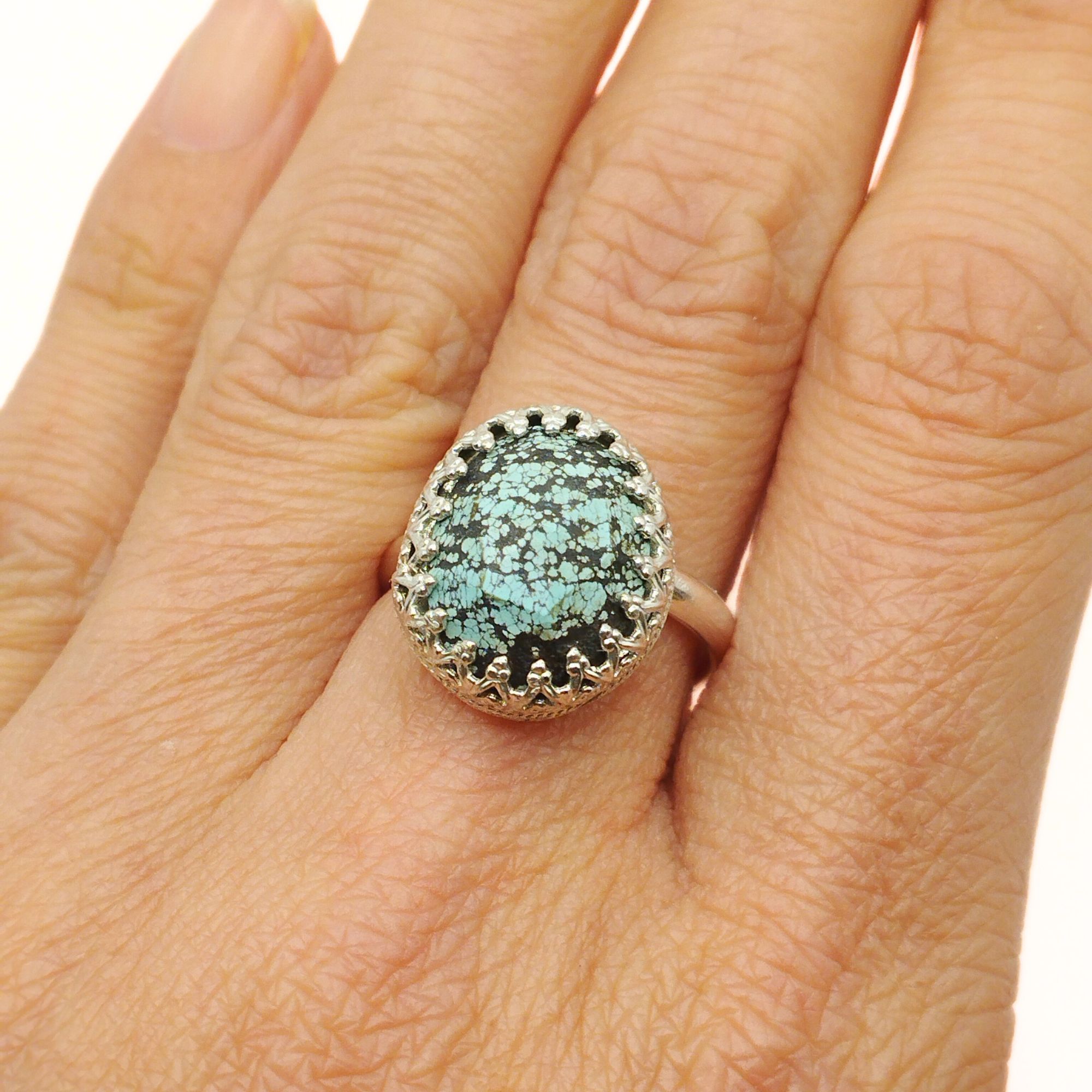 Cette bague artisanale en Turquoise Tibétaine et argent sterling 925 est unique car nous la concevons méticuleusement à la main.