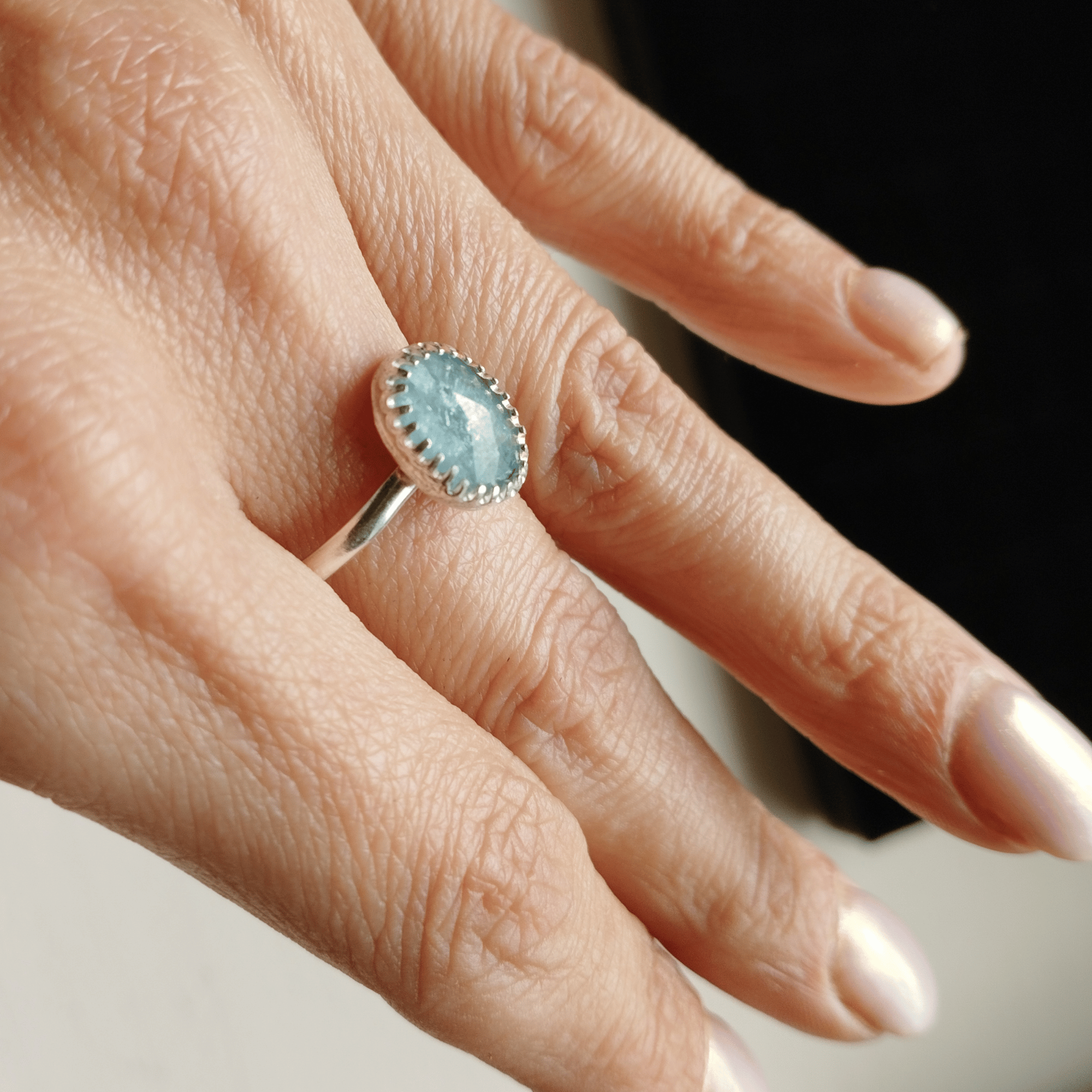 Découvrez une création unique avec cette bague artisanale en cyanite et argent sterling 925.
