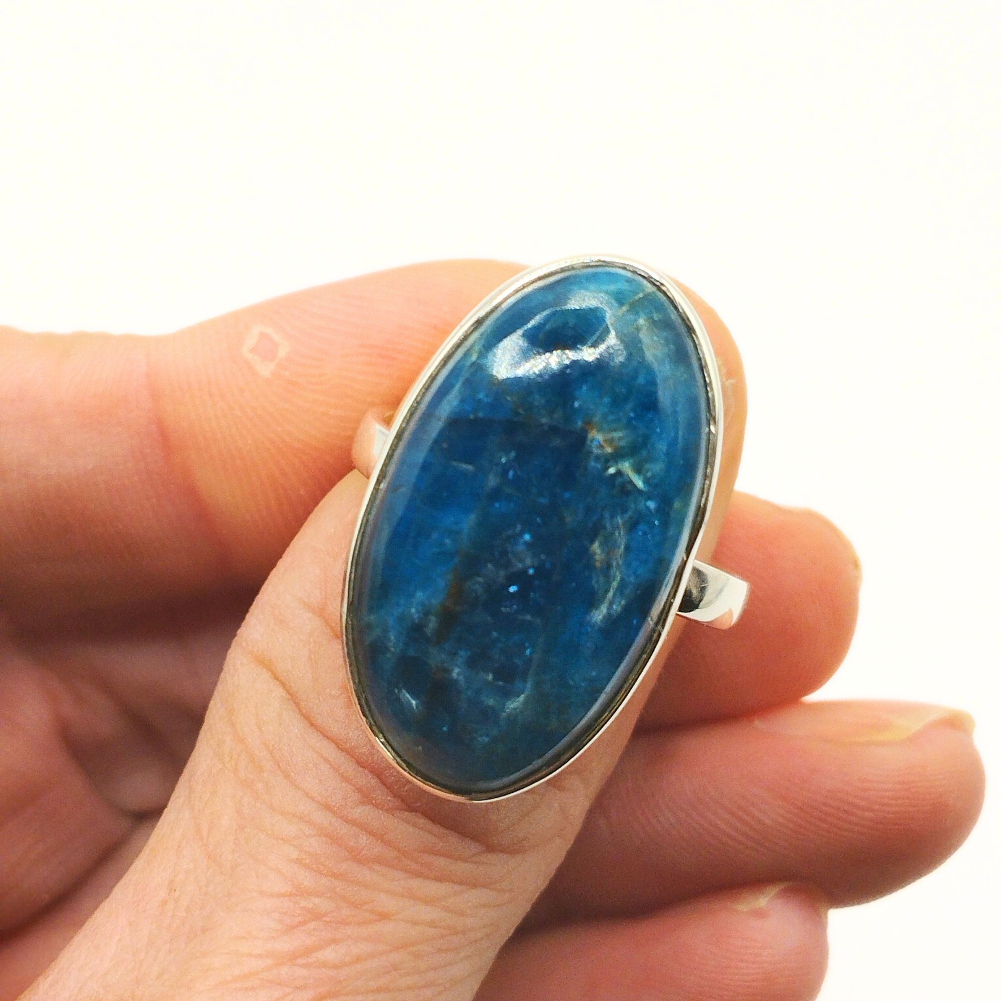 Cette bague artisanale en Apatite et argent sterling 925 s’accompagne de sa pochette.