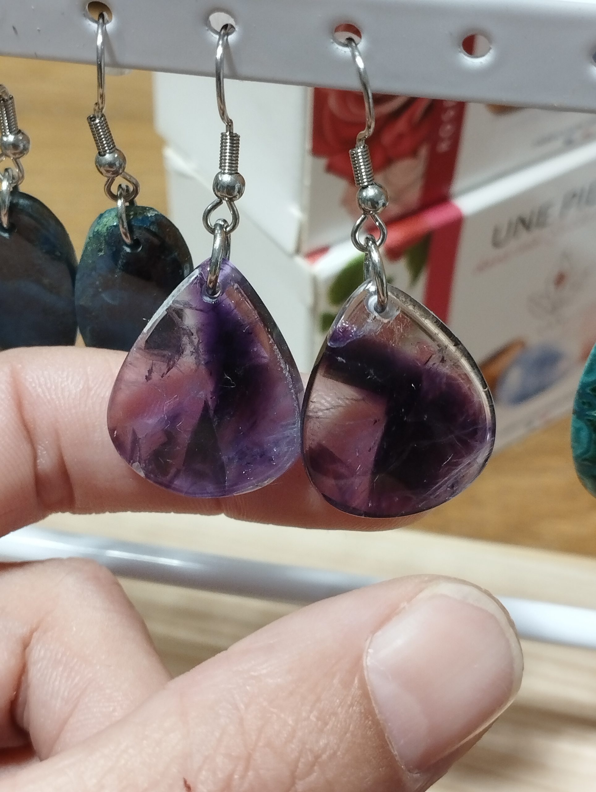 Venez essayer ces superbes boucles d’oreilles en améthyste dans notre boutique dans le Cantal au cœur des volcans d’Auvergne.