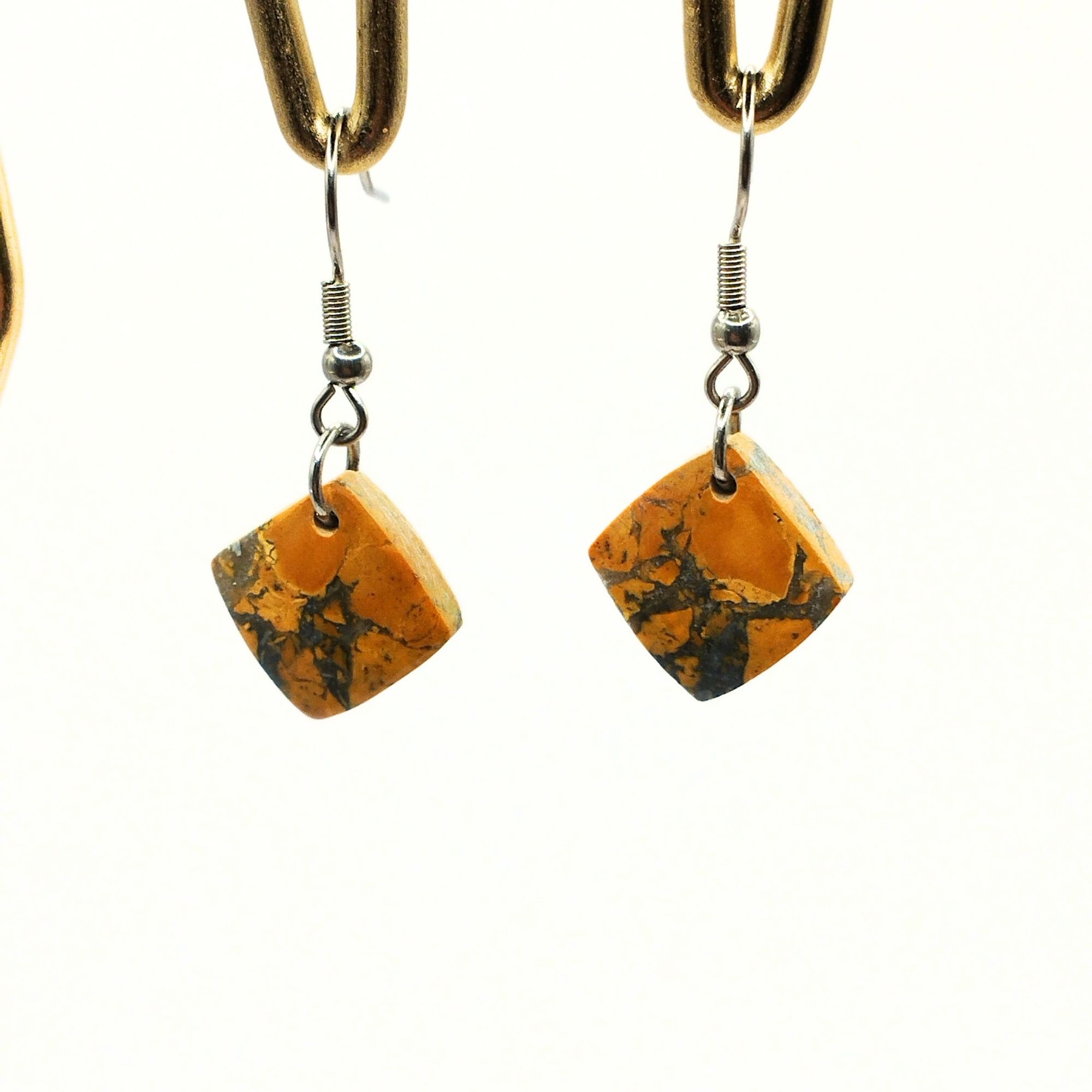 Boucles d’oreilles en acier inoxydable 304 et jaspe maligano