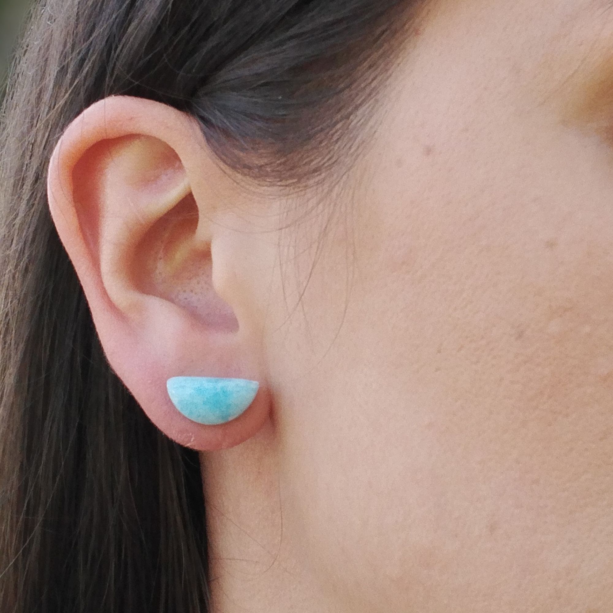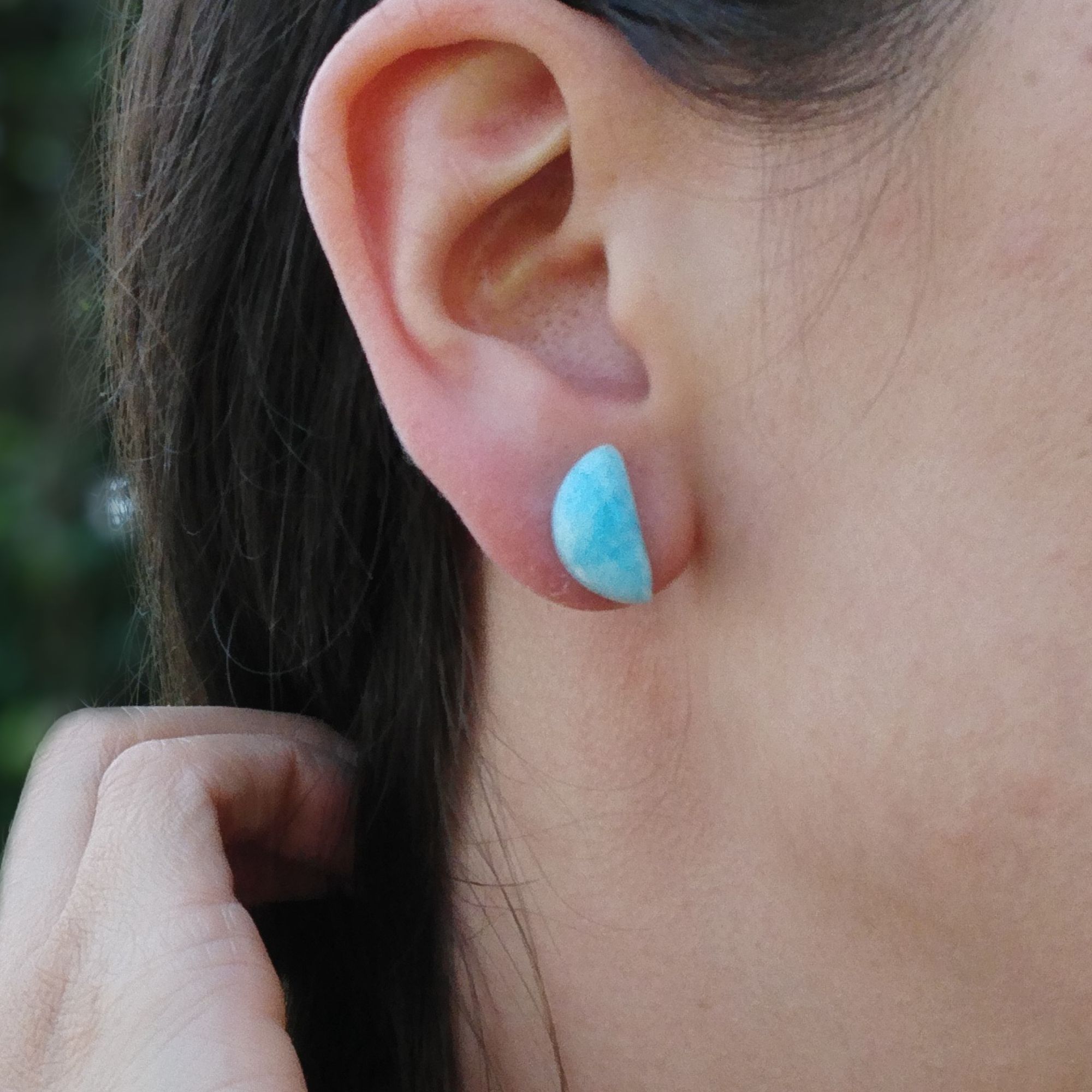 Une tige en argent sterling 925 est fixé et sert de puce à la pierre de larimar