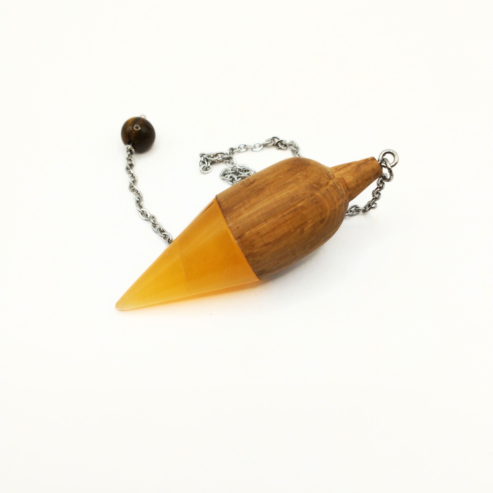Découvrez une création artisanale et unique avec notre pendule divinatoire ou de soin en calcite orange.
