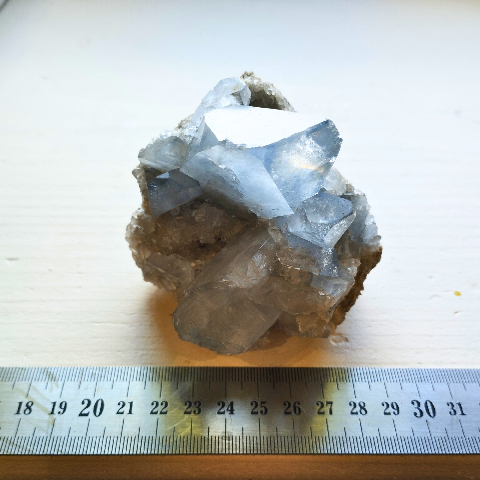 La célestine est donc un minéral qui se forme principalement par des processus sédimentaires et hydrothermaux, souvent en association avec d’autres minéraux évaporitiques. Sa formation est fortement influencée par les conditions chimiques et environnementales locales, ce qui donne lieu à des cristallisations spectaculaires très recherchées par les collectionneurs.