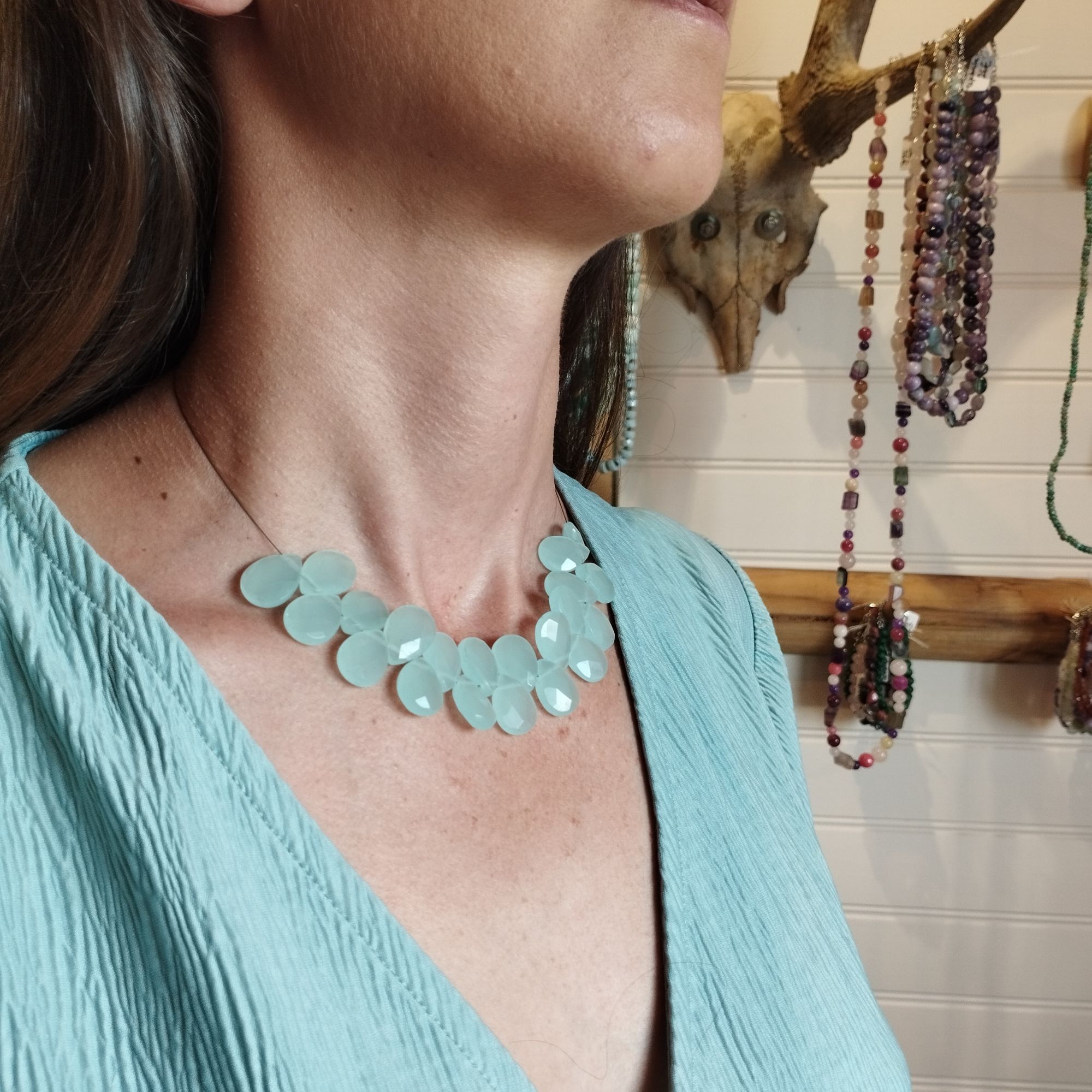 - La calcédoine aqua est réputée pour ses effets apaisants. Elle aide à calmer l’esprit et à réduire le stress, favorisant une atmosphère de tranquillité et de paix. Elle est particulièrement bénéfique pour ceux qui ont besoin de surmonter l’anxiété ou qui vivent dans un environnement stressant.