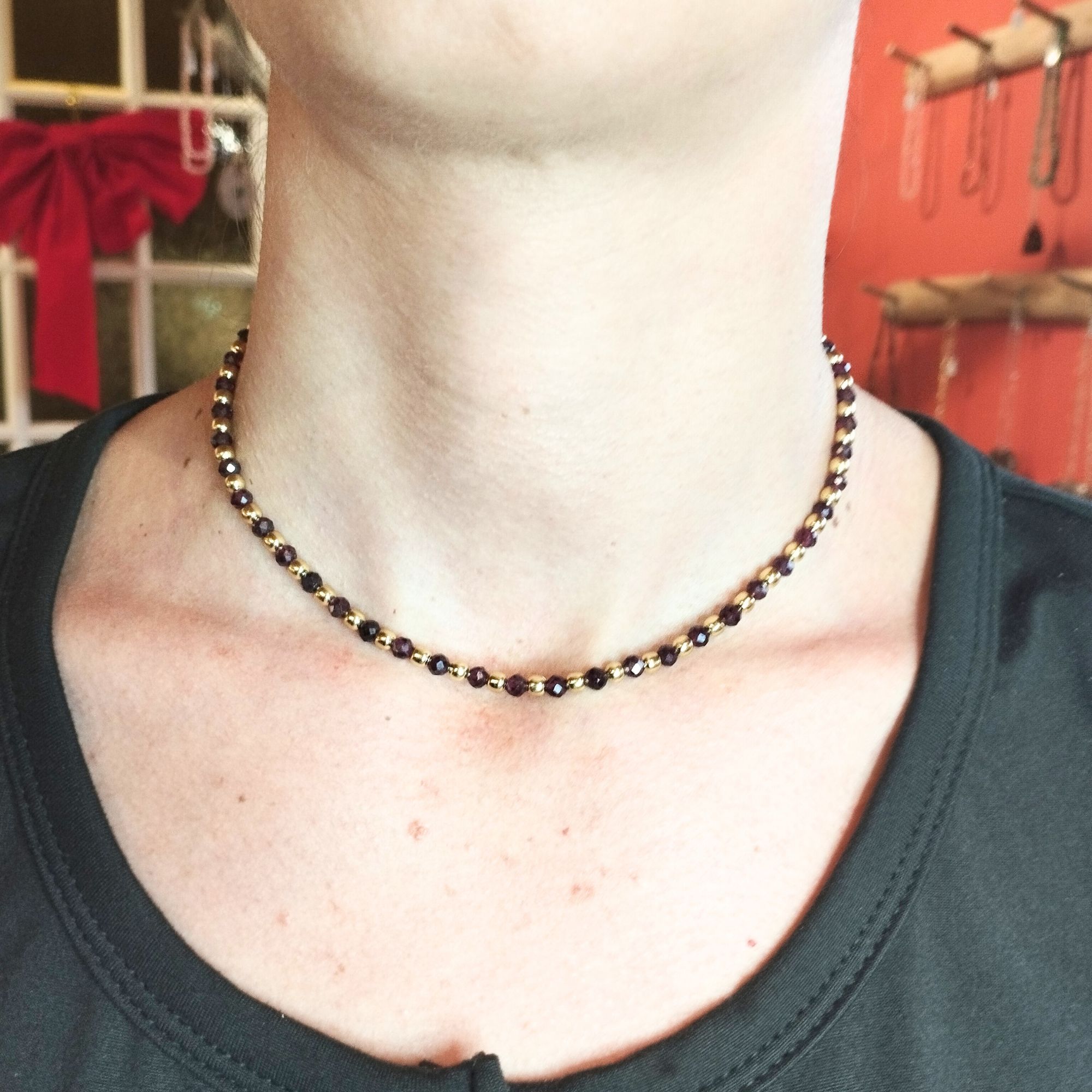 ✔️ Ce collier en grenat en perles de 3 mm est réglable.