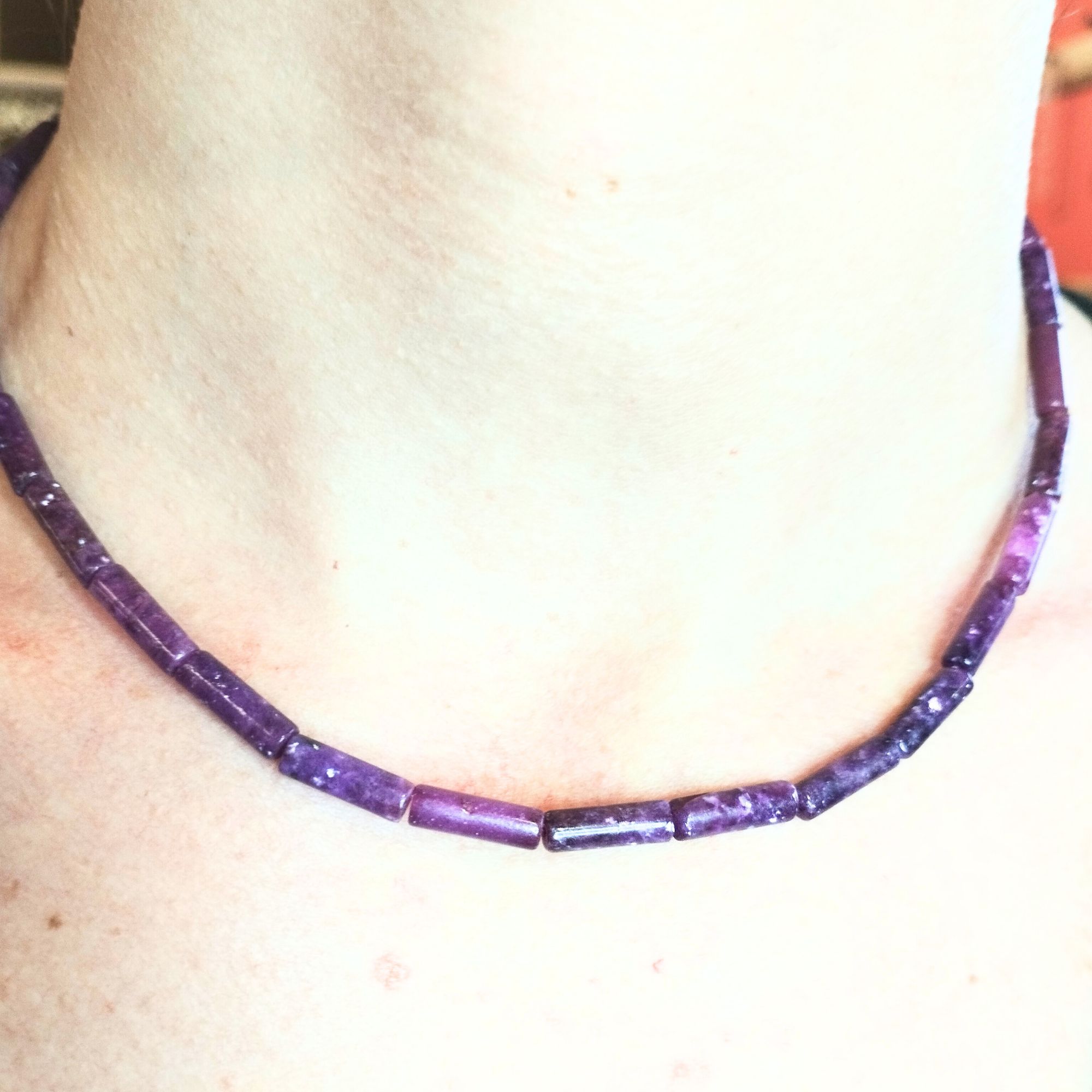 ✔️ Ce collier en lépidolite est réglable de 39 à 41 cm.