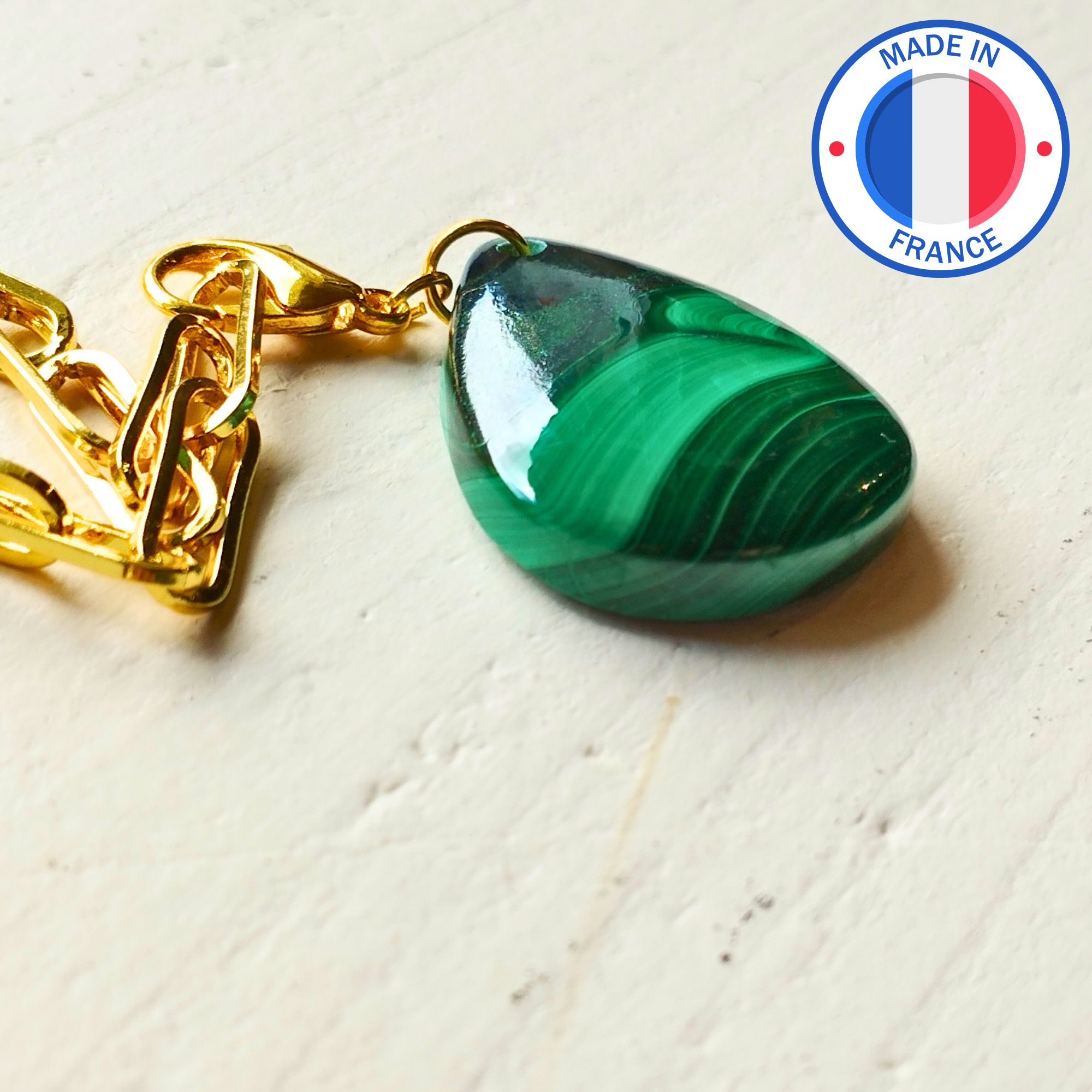 La malachite est une pierre tendre. Cela signifie qu’il est important de manipuler la pierre verte avec précaution pour éviter les dommages. Elle a tout de même une densité relativement élevée, ce qui lui donne une bonne résistance.