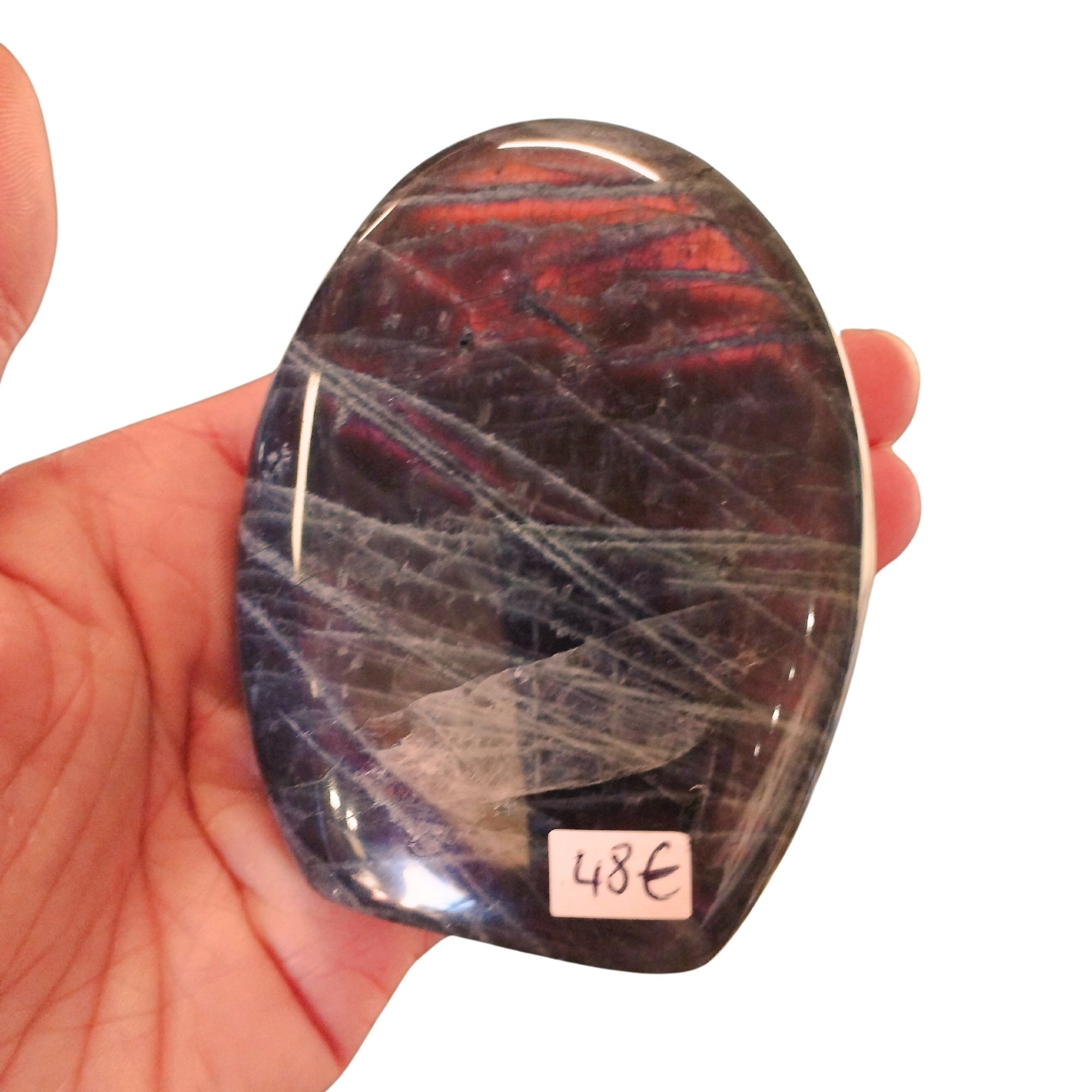 Sur le plan émotionnel, la labradorite aide à réduire le stress et l’anxiété, offrant un sentiment de calme et de sécurité. Elle encourage la positivité et la clarté mentale, aidant à surmonter les pensées négatives et les doutes. Cette pierre est également utile pour améliorer la confiance en soi et l’estime de soi, favorisant une attitude proactive et déterminée.