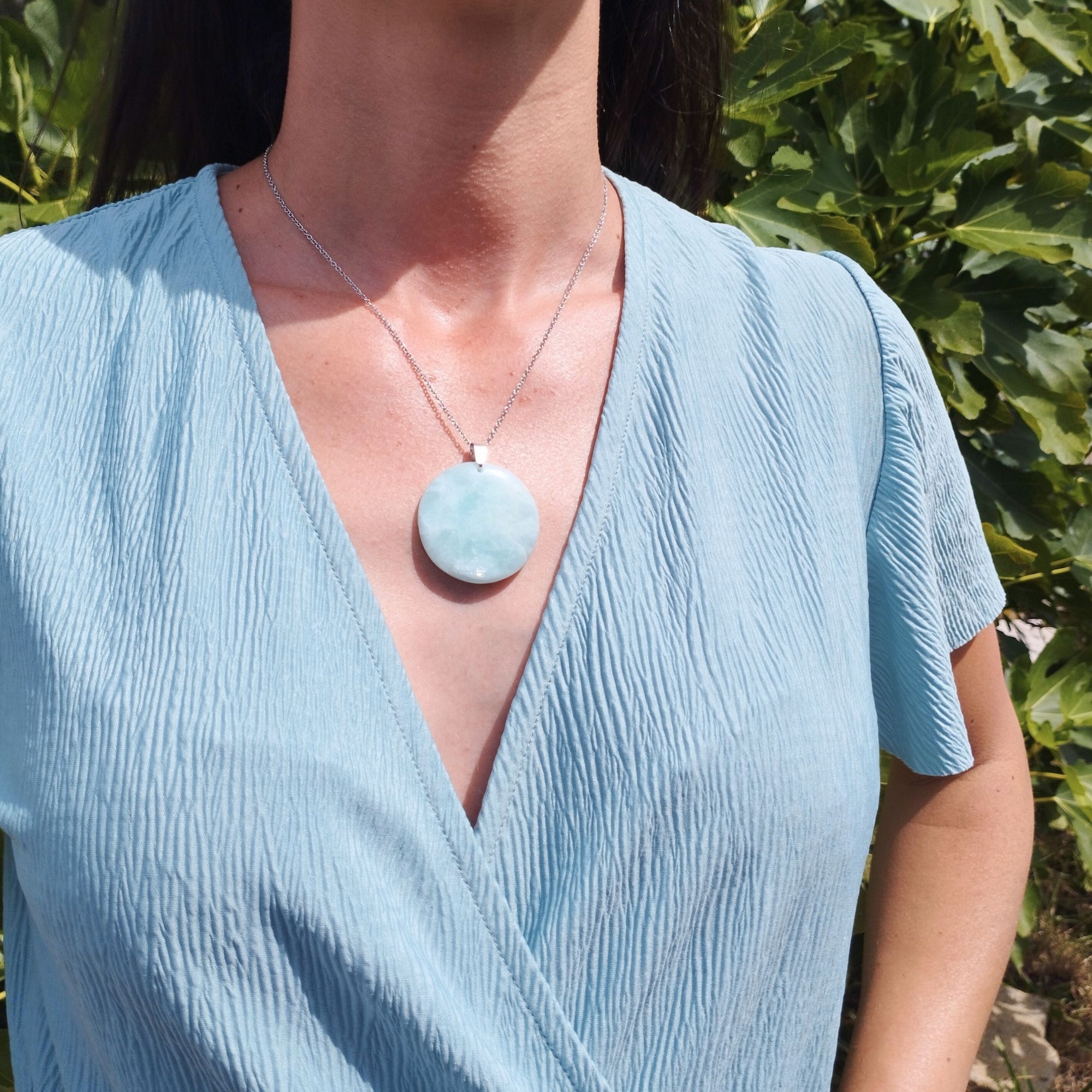 - L’amazonite est réputée pour son effet harmonisant sur les émotions. Elle aide à réduire le stress et l’anxiété, apportant une sensation de paix et de tranquillité intérieure. Elle est idéale pour ceux qui vivent des périodes de grande tension ou qui sont souvent confrontés à des situations stressantes.