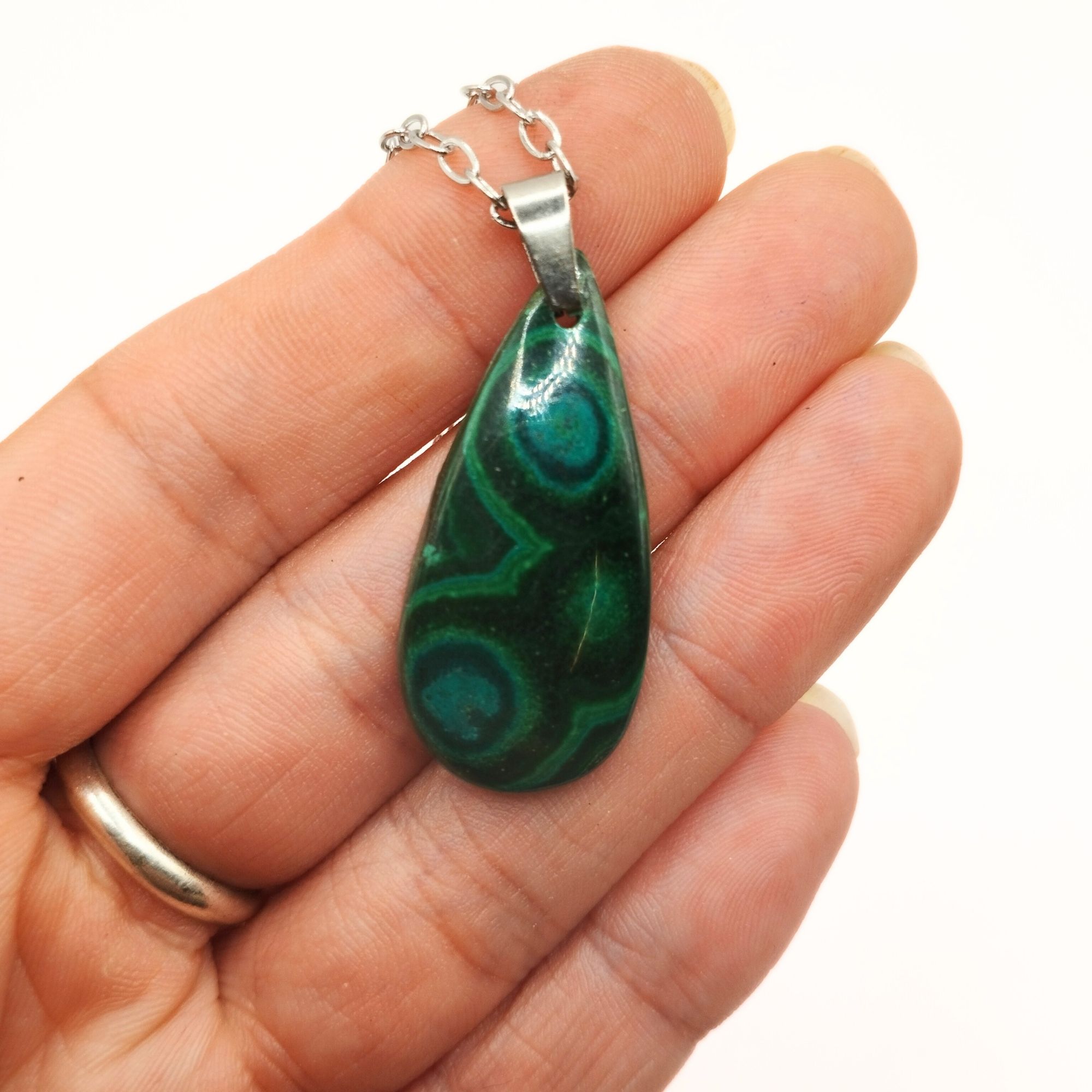 ✔️ Ce pendentif en malachite est réalisé dans notre atelier, dans le département du Cantal (France). Nous vous accueillons volontiers à la boutique atelier au cœur des volcans d’Auvergne pour un atelier lapidaire, de sertissage ou bien encore pour en apprendre plus sur la lithothérapie .