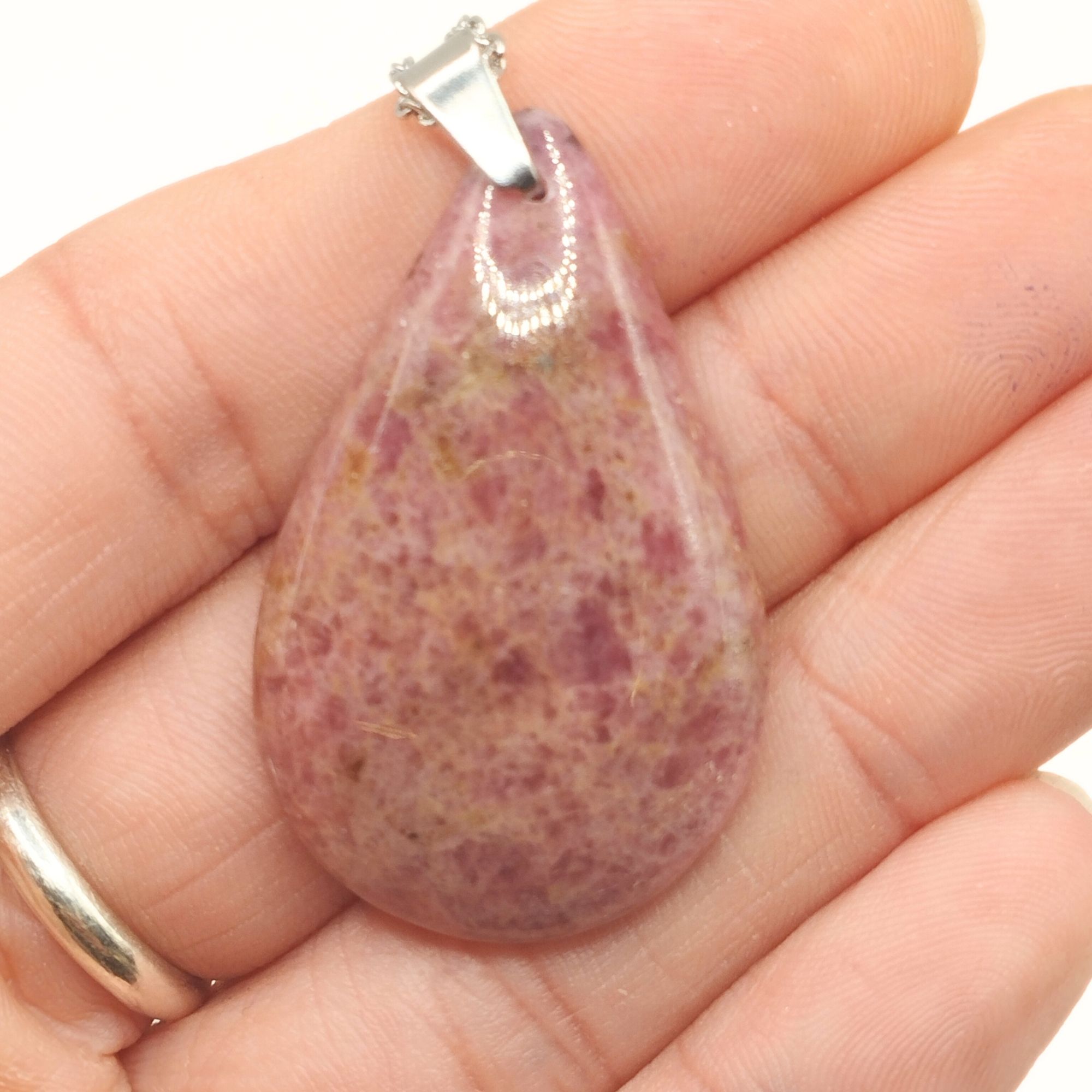 ✔️ Ce pendentif en rhodonite est réalisé dans notre atelier, dans le département du Cantal (France). Nous vous accueillons volontiers à la boutique atelier au cœur des volcans d’Auvergne pour un atelier lapidaire, de sertissage ou bien encore pour en apprendre plus sur la lithothérapie .