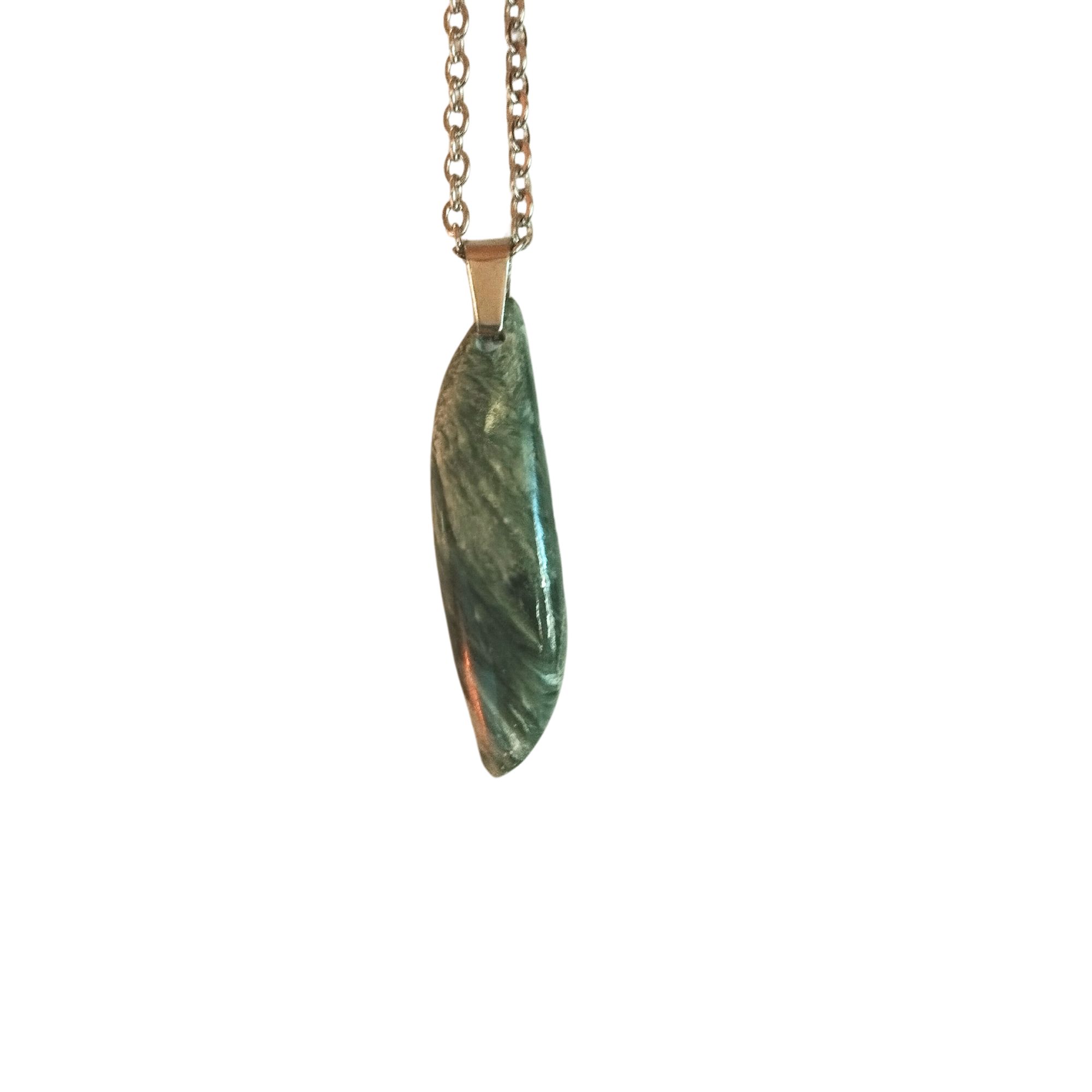 ✔️ Ce pendentif en séraphinite est réalisé dans notre atelier, dans le département du Cantal (France). Nous vous accueillons volontiers à la boutique atelier au cœur des volcans d’Auvergne pour un atelier lapidaire, de sertissage ou bien encore pour en apprendre plus sur la lithothérapie .