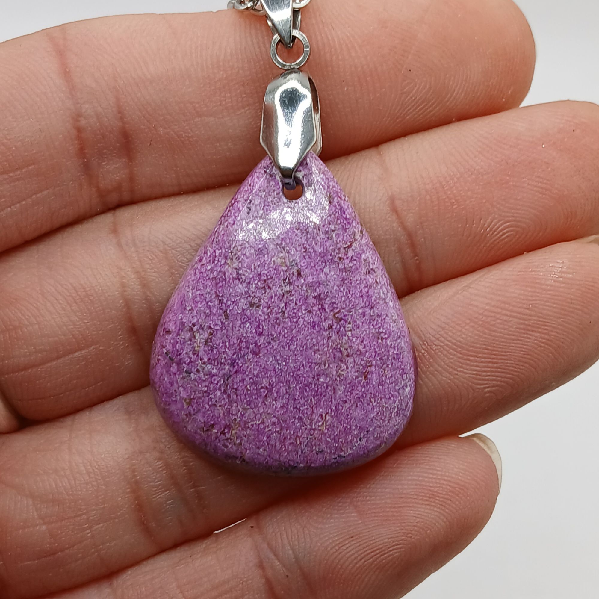 ✔️ Ce pendentif en Stichtite est réalisé dans notre atelier, dans le département du Cantal (France). Nous vous accueillons volontiers à la boutique atelier au cœur des volcans d’Auvergne pour un atelier lapidaire, de sertissage ou bien encore pour en apprendre plus sur la lithothérapie .