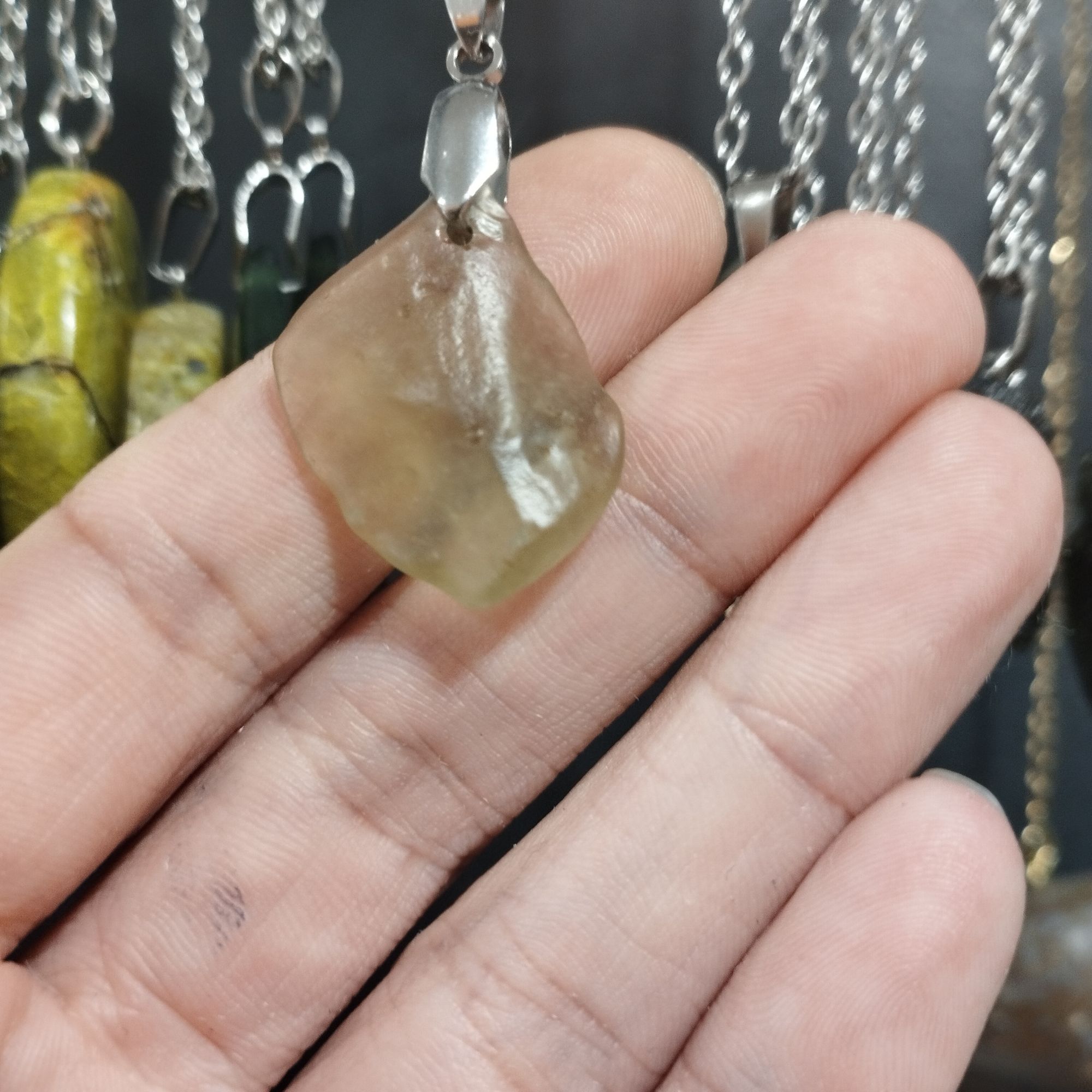 Le verre lybien est une pierre rare et mystérieuse, formée il y a environ 28 millions d’années par l’impact d’une météorite sur les sables du désert libyen. Sa teinte jaune doré évoque le soleil, la lumière et la puissance cosmique. Ce verre naturel, chargé d’une énergie très pure, agit comme un pont entre les plans terrestres et célestes. Il est reconnu pour élever la fréquence vibratoire de celui qui le porte et pour faciliter l’accès à des états de conscience supérieurs.