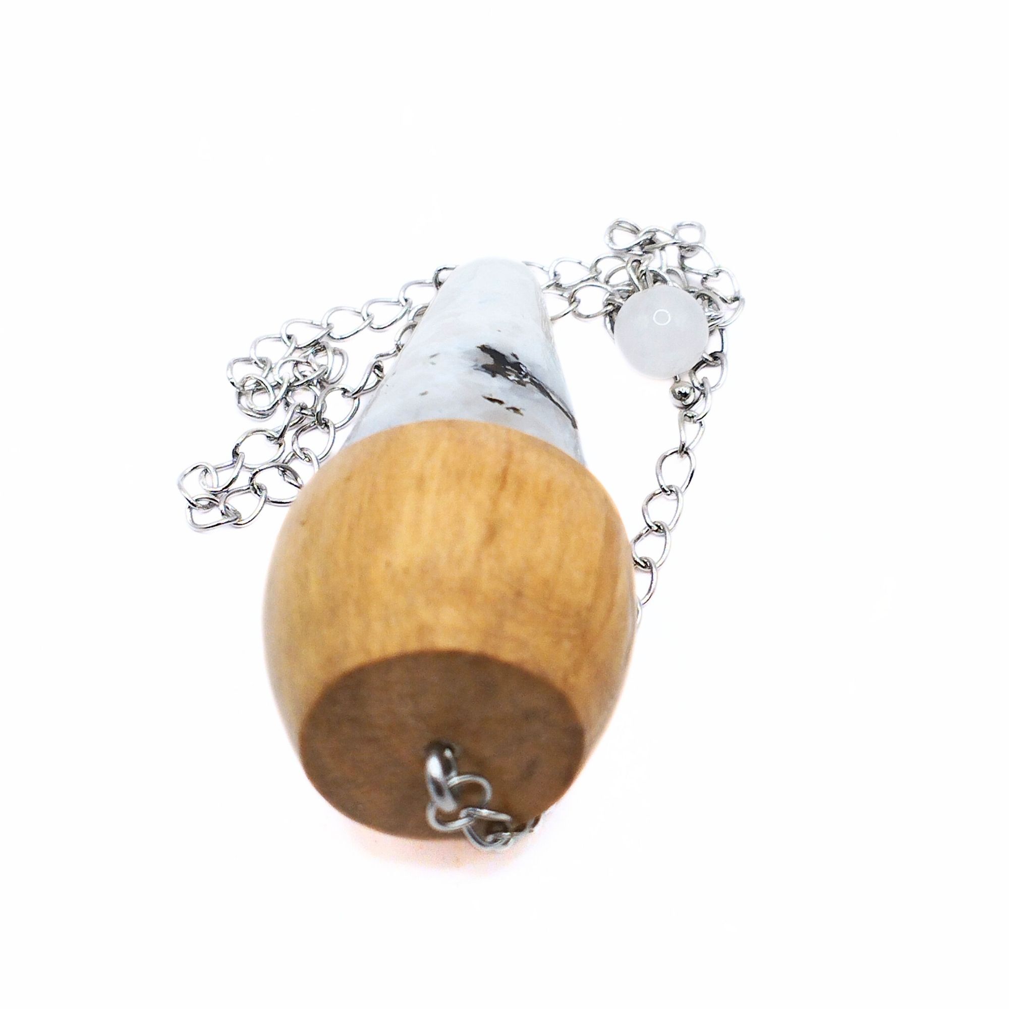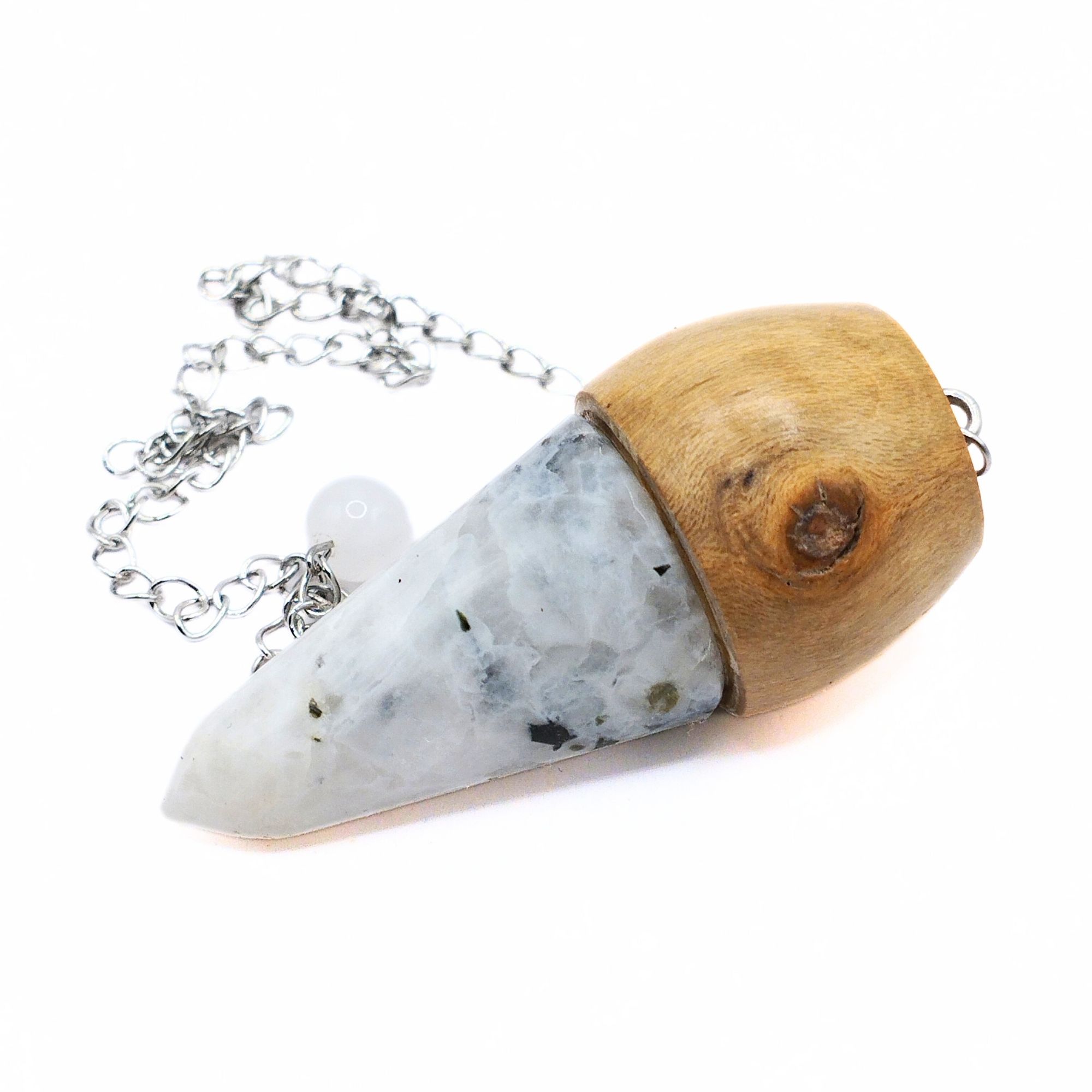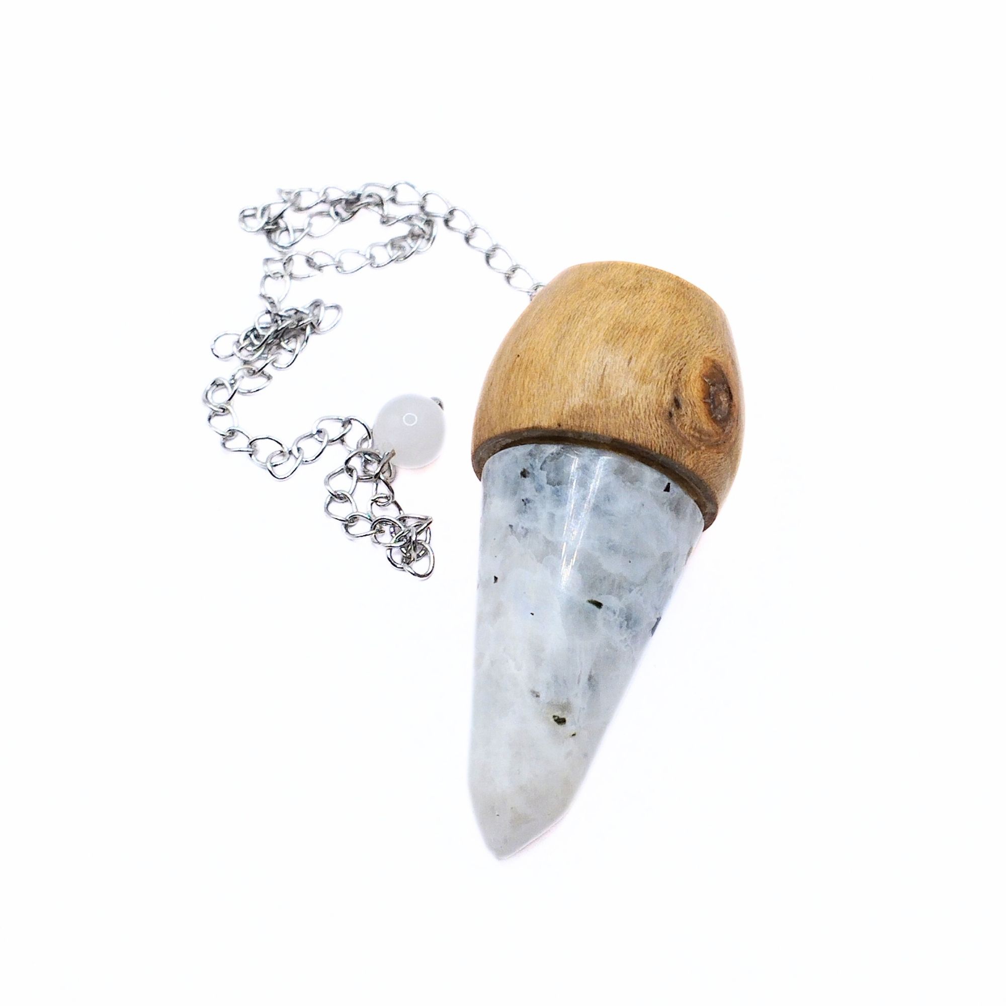 Tous les pendules sont fabriqués à la main par mes soins à partir de bois et pierres bruts.