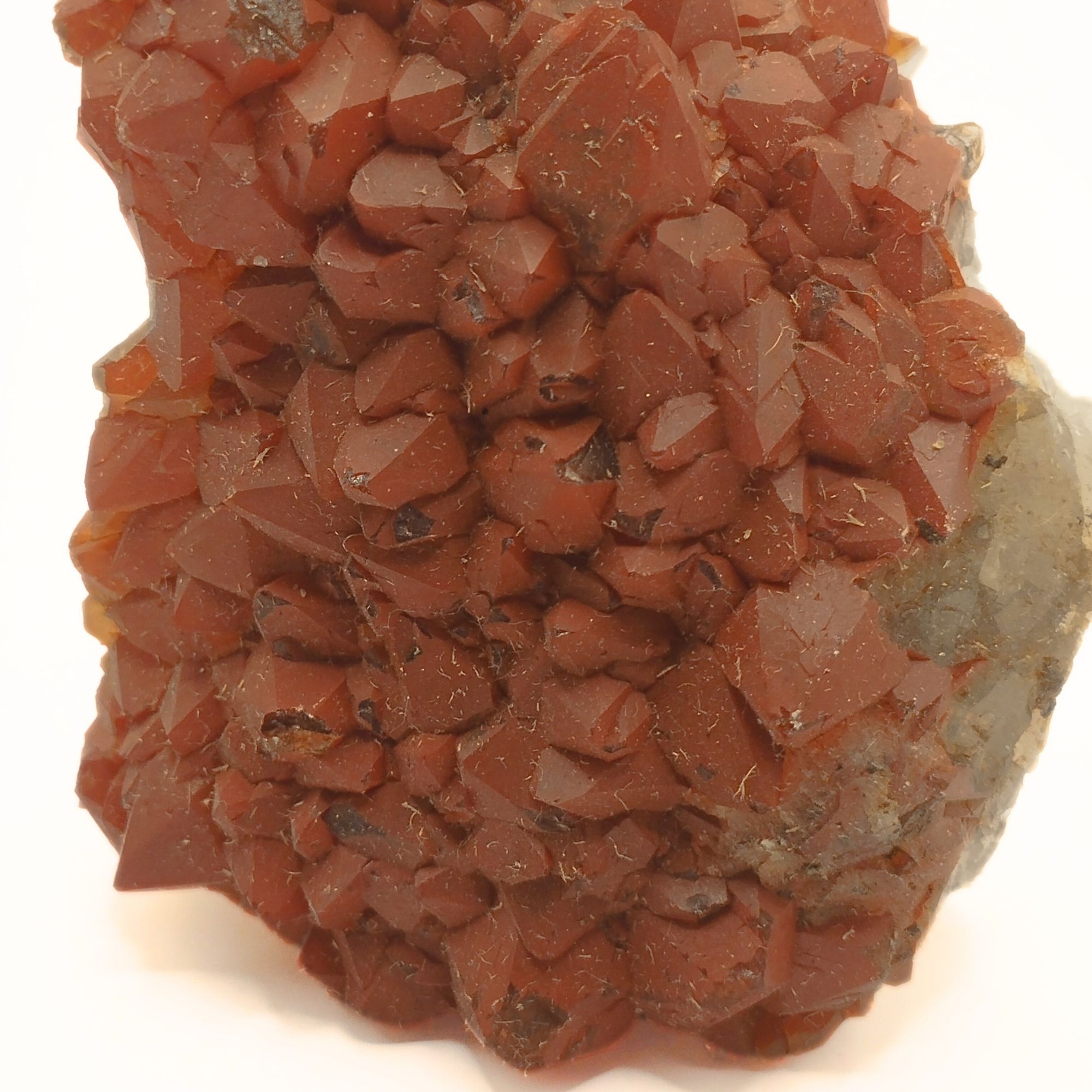 L’hématoïde se distingue par sa couleur vive allant du rouge au jaune, due aux particules d’hématite dispersées dans le quartz. Sa dureté de 7 sur l’échelle de Mohs le rend résistant et adapté à divers usages, notamment en bijouterie et en décoration. L’éclat vitreux du quartz et la présence de l’hématite créent des effets visuels intéressants, avec des nuances variables selon la lumière.