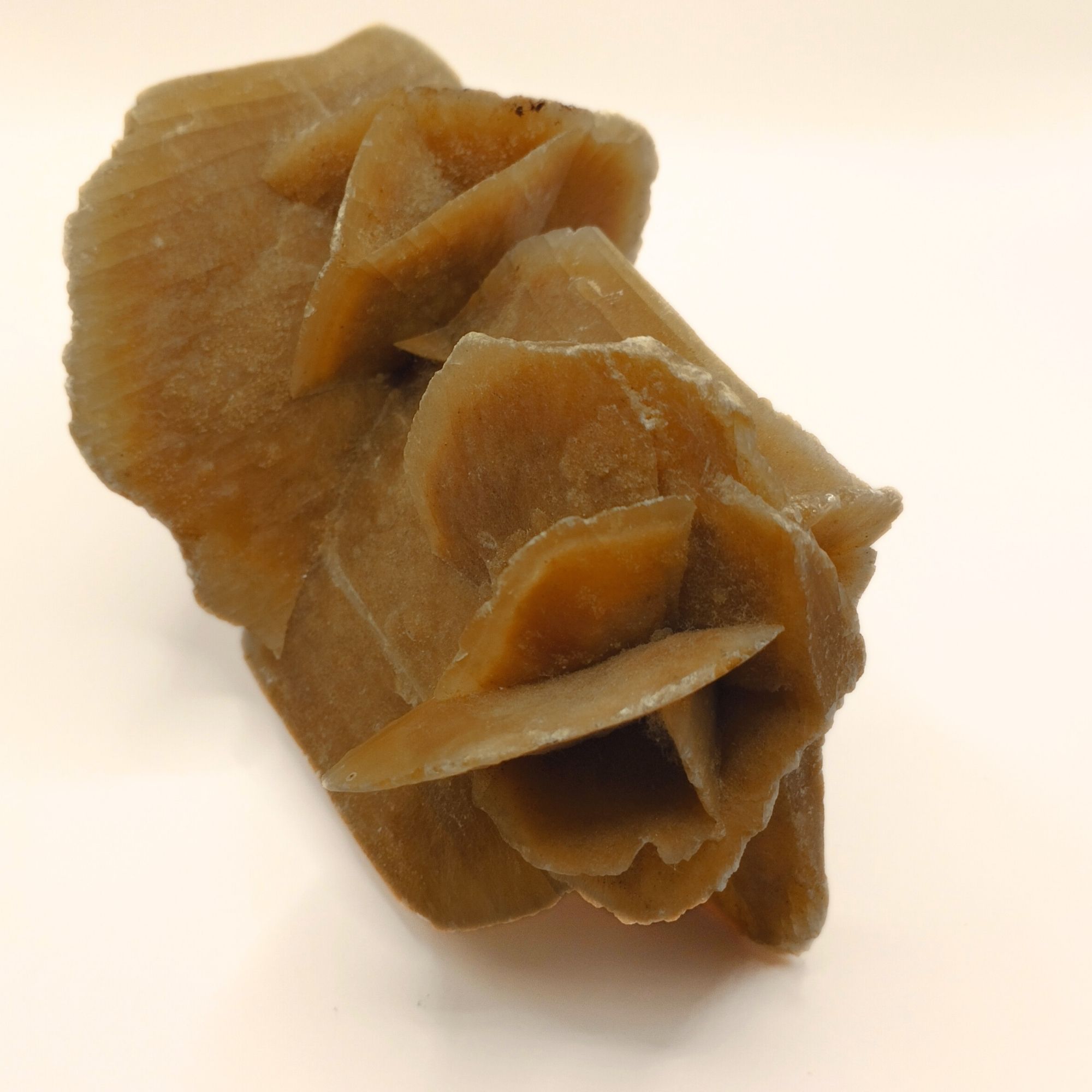 - La cristallisation se produit en couches, les cristaux formant des lames qui s’entrecroisent, capturant des grains de sable entre eux. Cela donne à la structure finale son aspect de rose avec des « pétales » en relief.