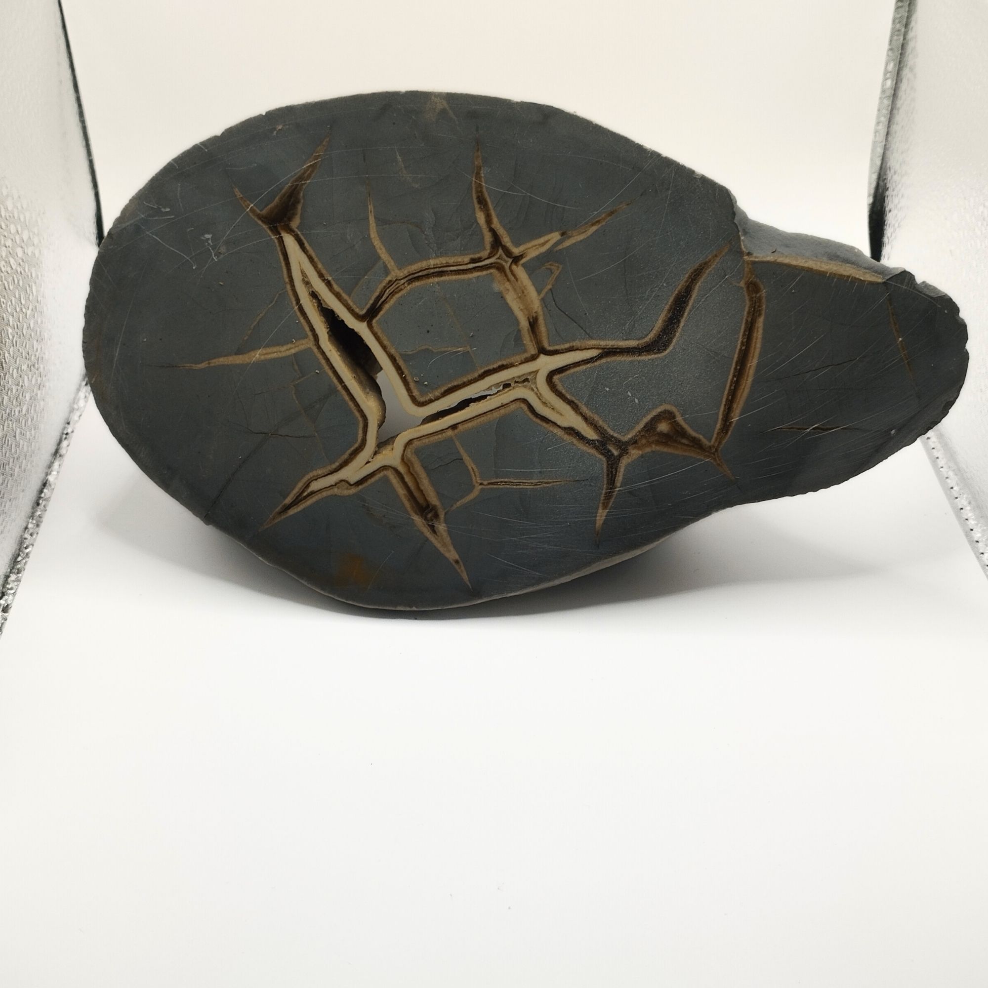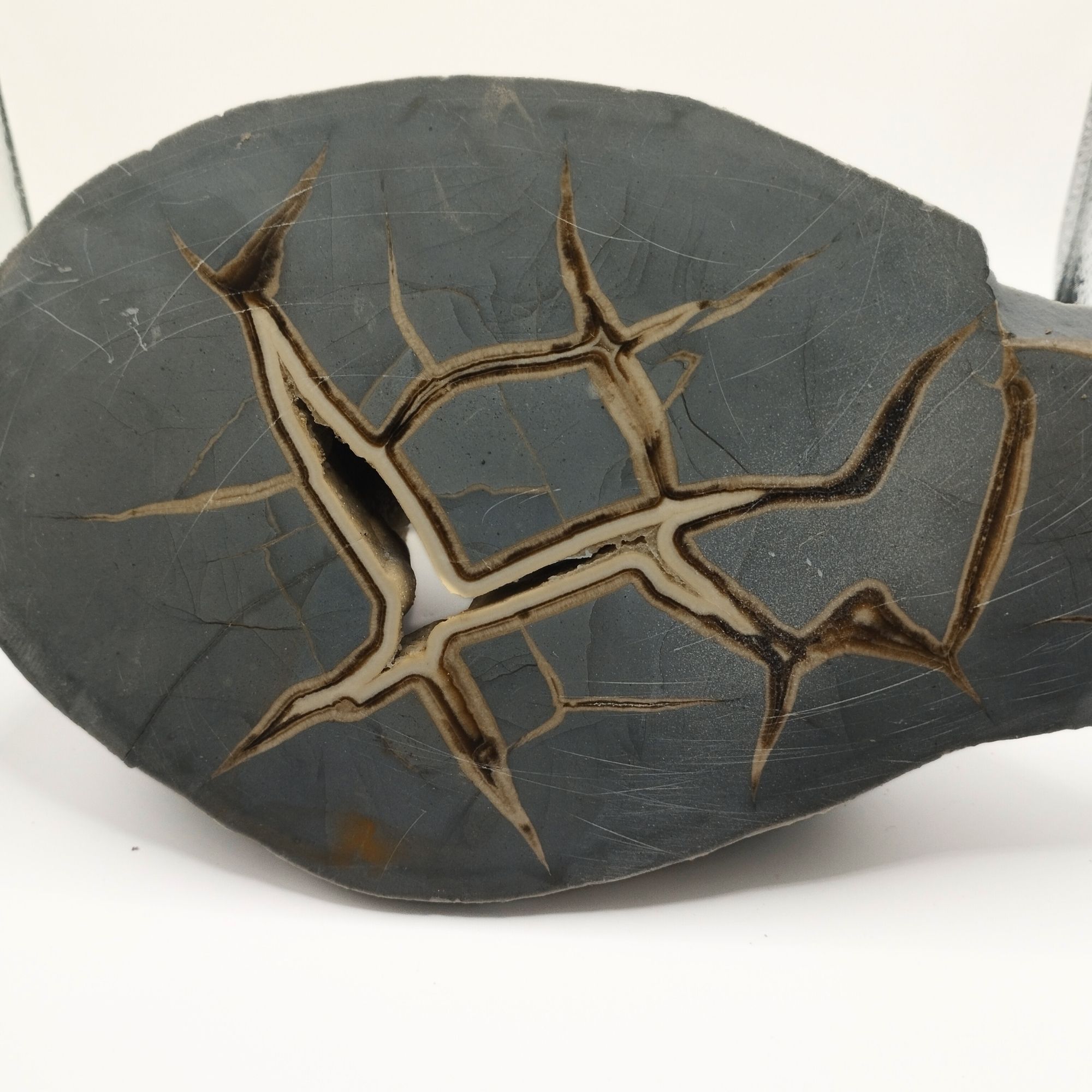 Les septarias sont particulièrement appréciées pour leur beauté esthétique et sont souvent polies et coupées pour révéler les motifs complexes de leurs fissures internes, faisant d’elles des objets de collection et des pierres ornementales très recherchées. Leurs motifs uniques et leur formation intriguent tant les géologues que les collectionneurs de minéraux et les artistes.