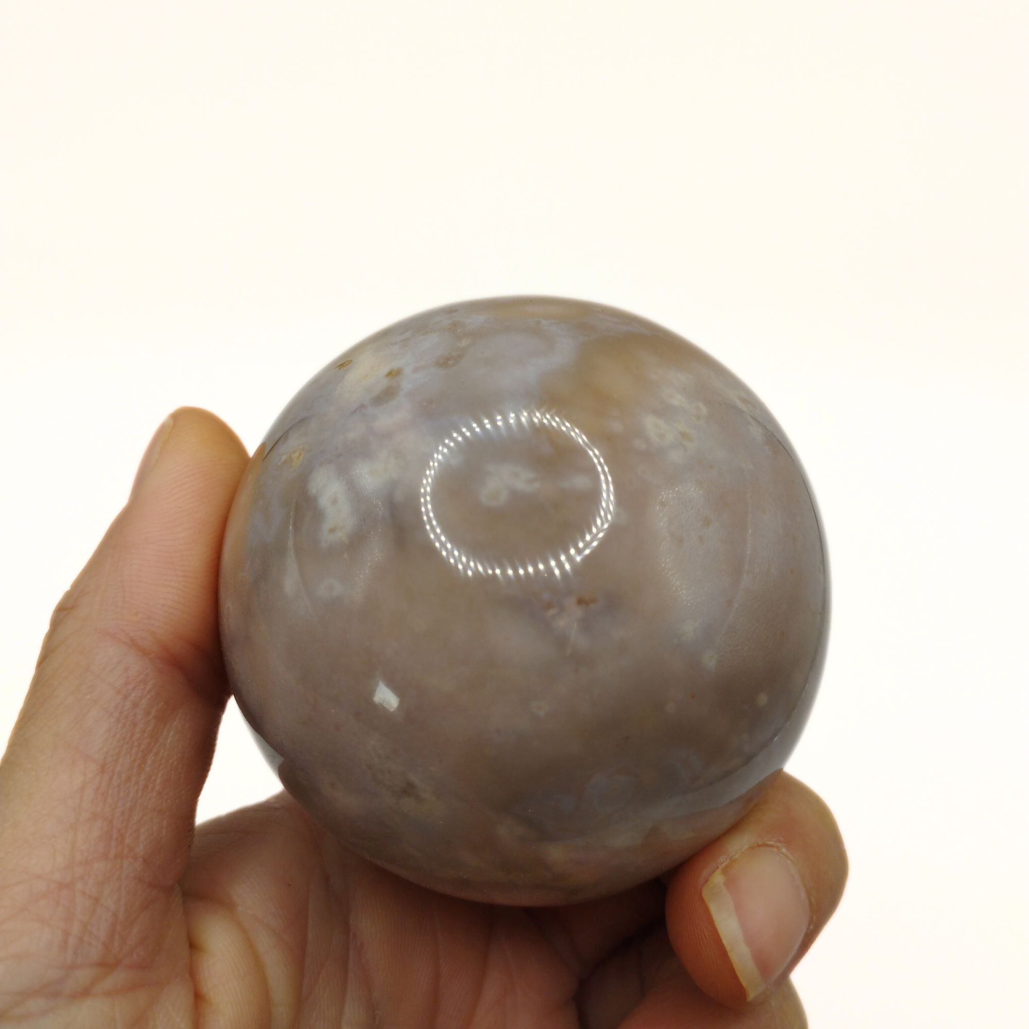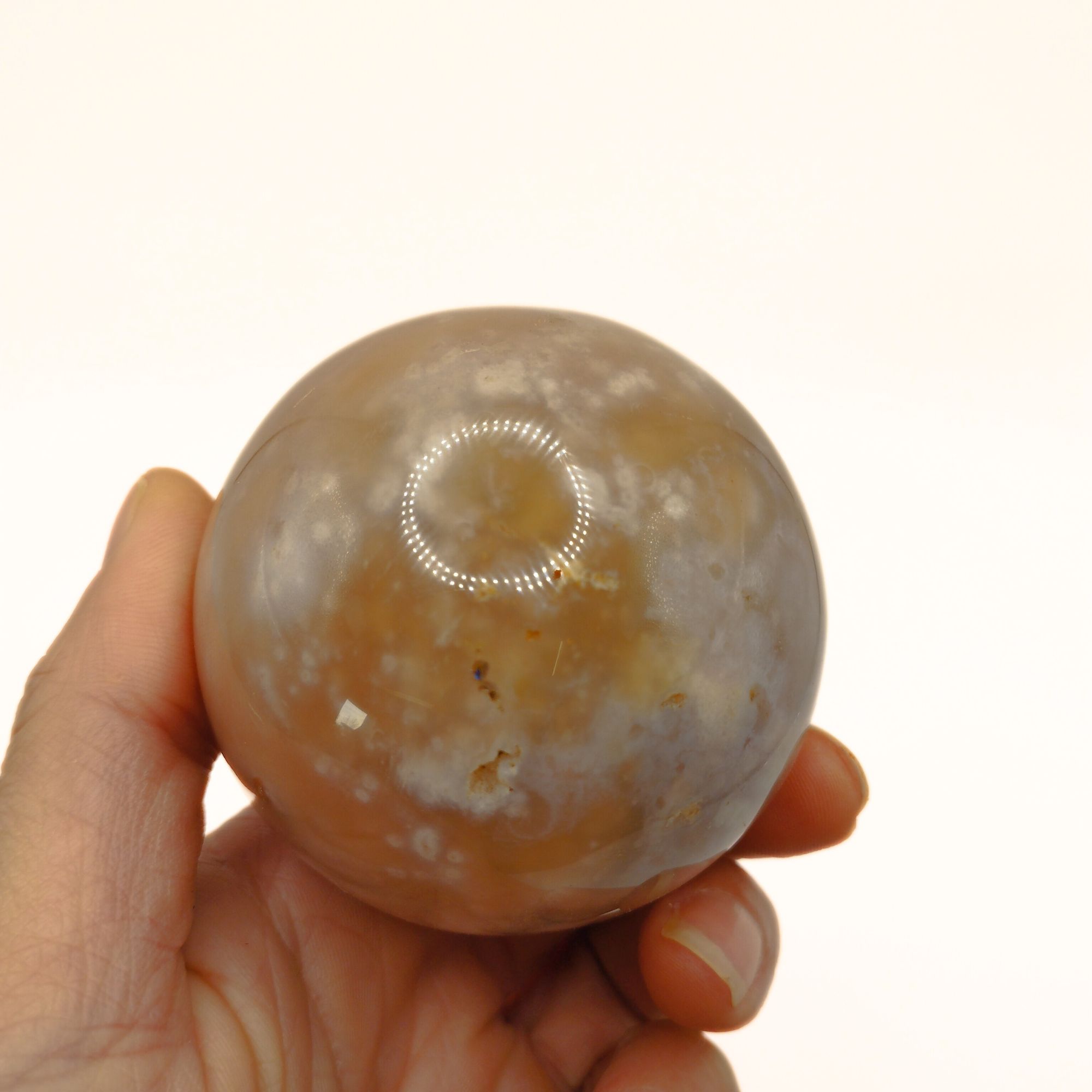 Cette sphère d’Agate Fleur avec son support nous vient de Madagascar